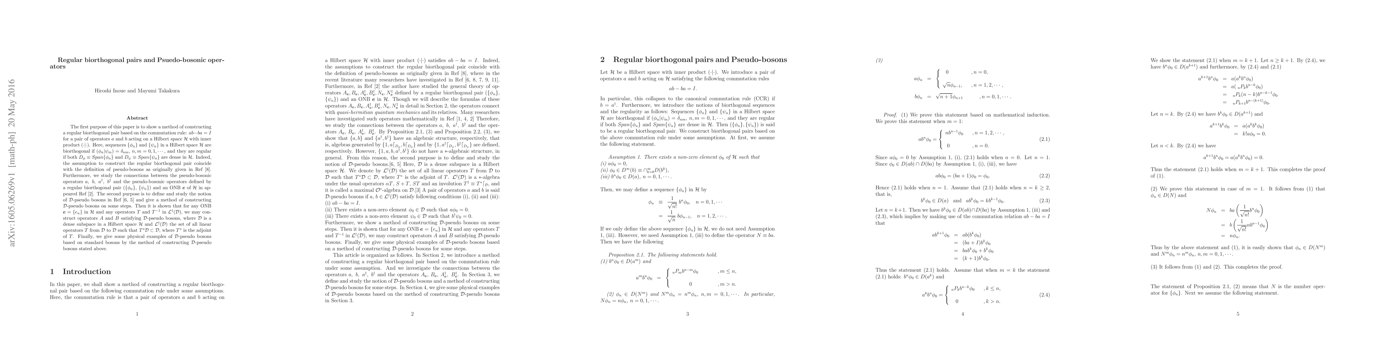 The first purpose of this paper is to show a method of constructing a regular biorthogonal pair based on the commutation rule: $ab-ba=I$ for a pair of operators $a$ and $b$ acting on a Hilbert space ${\cal H}$ with inner product $( \cdot | \cdot )$. Here, sequences $\{ \phi_{n} \}$ and $\{ \psi_{n} \}$ in a Hilbert space ${\cal H}$ are biorthogonal if $( \phi_{n} | \psi_{m})= \delta_{nm}$, $n,m=0,1, \cdots$, and they are regular if both $D_{\phi} \equiv Span \{ \phi_{n} \}$ and $D_{\psi} \equiv Span \{ \psi_{n} \}$ are dense in ${\cal H}$. Indeed, the assumption to construct the regular biorthogonal pair coincide with the definition of pseudo-bosons as originally given in Ref \cite{bagarello10}. Furthermore, we study the connections between the pseudo-bosonic operators $a, \; b, \; a^{\dagger}, \; b^{\dagger}$ and the pseudo-bosonic operators defined by a regular biorthogonal pair $(\{ \phi_{n} \}$, $\{ \psi_{n} \} )$ and an ONB $\mbox{ $e$}$ of ${\cal H}$ in appeared Ref \cite{hiroshi1}. The second purpose is to define and study the notion of ${\cal D}$-pseudo bosons in Ref \cite{bagarello13, bagarello2013} and give a method of constructing ${\cal D}$-pseudo bosons on some steps. Then it is shown that for any ONB $\mbox{ $e$}= \{ e_{n} \}$ in ${\cal H}$ and any operators $T$ and $T^{-1}$ in ${\cal L}^{\dagger} ( {\cal D})$, we may construct operators $A$ and $B$ satisfying ${\cal D}$-pseudo bosons, where ${\cal D}$ is a dense subspace in a Hilbert space ${\cal H}$ and ${\cal L}^{\dagger} ( {\cal D})$ the set of all linear operators $T$ from ${\cal D}$ to ${\cal D}$ such that $T^{\ast} {\cal D} \subset {\cal D}$, where $T^{\ast}$ is the adjoint of $T$. Finally, we give some physical examples of ${\cal D}$-pseudo bosons based on standard bosons by the method of constructing ${\cal D}$-pseudo bosons stated above.
