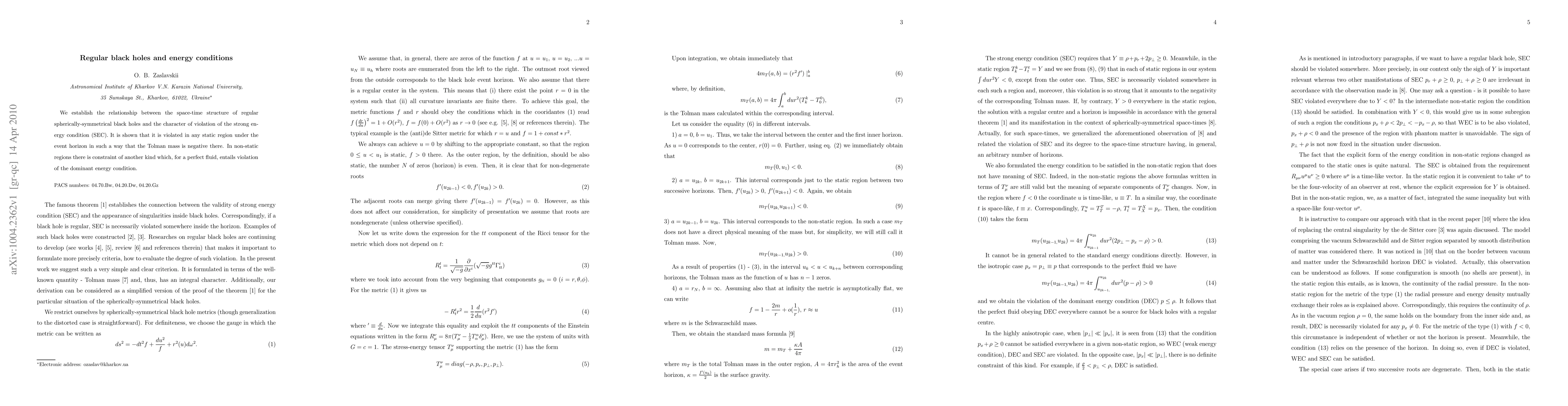 This paper establishes a link between black holes and energy conditions, showing that certain regions under the event horizon violate key energy conditions, with implications for understanding the structure of regular spherically-symmetrical black holes.