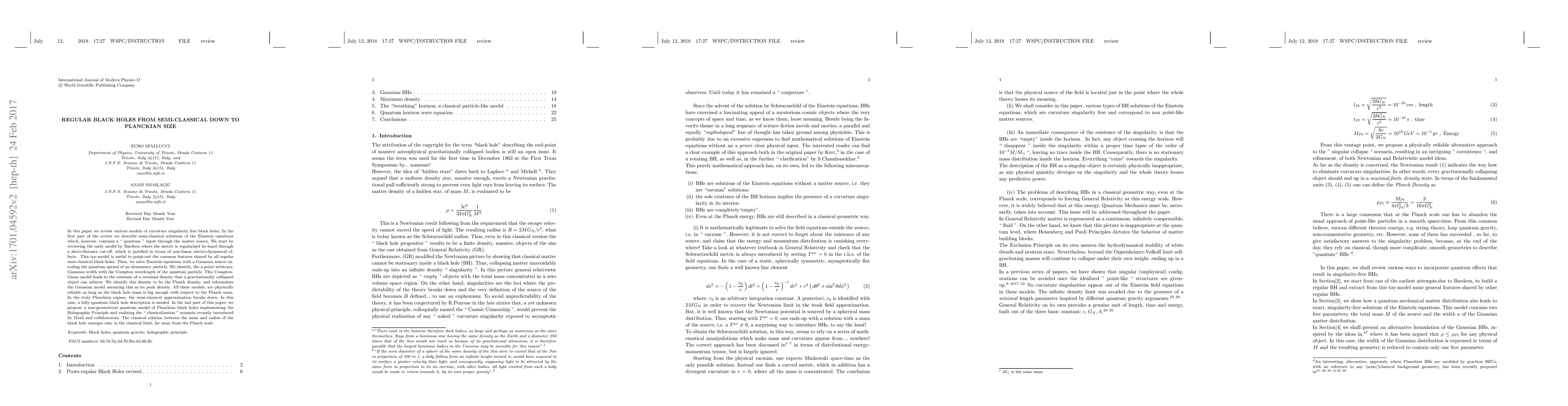 The paper reviews various models of curvature singularity-free black holes, starting with semi-classical solutions of Einstein equations incorporating quantum inputs through matter sources, and culminating in a non-geometrical quantum model for Planckian black holes implementing the Holographic Principle.