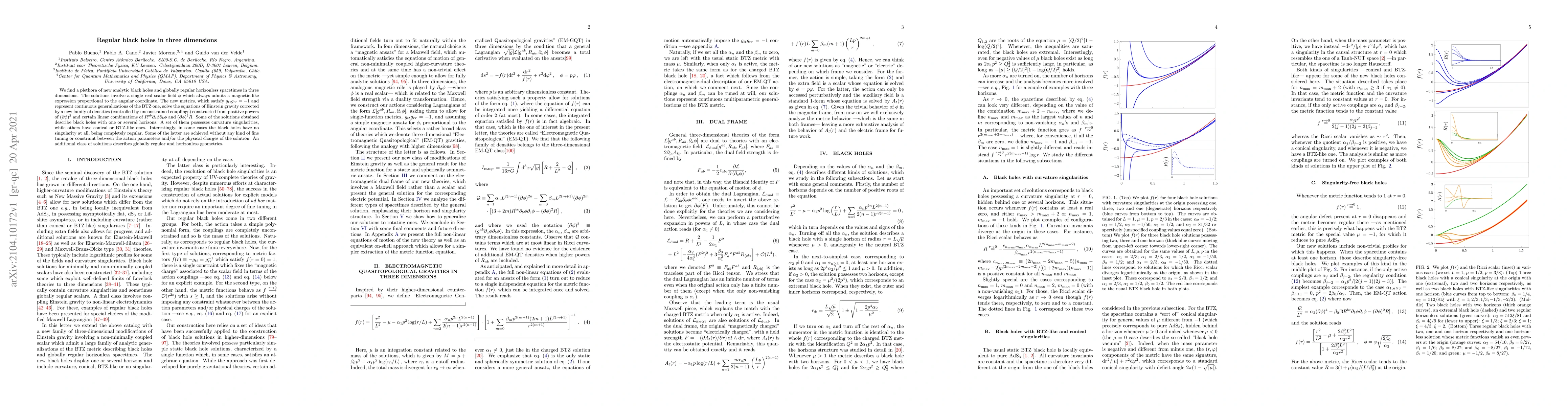 We find a plethora of new analytic black holes and globally regular horizonless spacetimes in three dimensions. The solutions involve a single real scalar field $\phi$ which always admits a magnetic-like expression proportional to the angular coordinate. The new metrics, which satisfy $g_{tt}g_{rr}=-1$ and represent continuous generalizations of the BTZ one, solve the equations of Einstein gravity corrected by a new family of densities (controlled by unconstrained couplings) constructed from positive powers of $(\partial \phi)^2$ and certain linear combinations of $R^{ab} \partial_a \phi \partial_b \phi$ and $(\partial \phi)^2 R$. Some of the solutions obtained describe black holes with one or several horizons. A set of them possesses curvature singularities, while others have conical or BTZ-like ones. Interestingly, in some cases the black holes have no singularity at all, being completely regular. Some of the latter are achieved without any kind of fine tuning or constraint between the action parameters and/or the physical charges of the solution. An additional class of solutions describes globally regular and horizonless geometries.