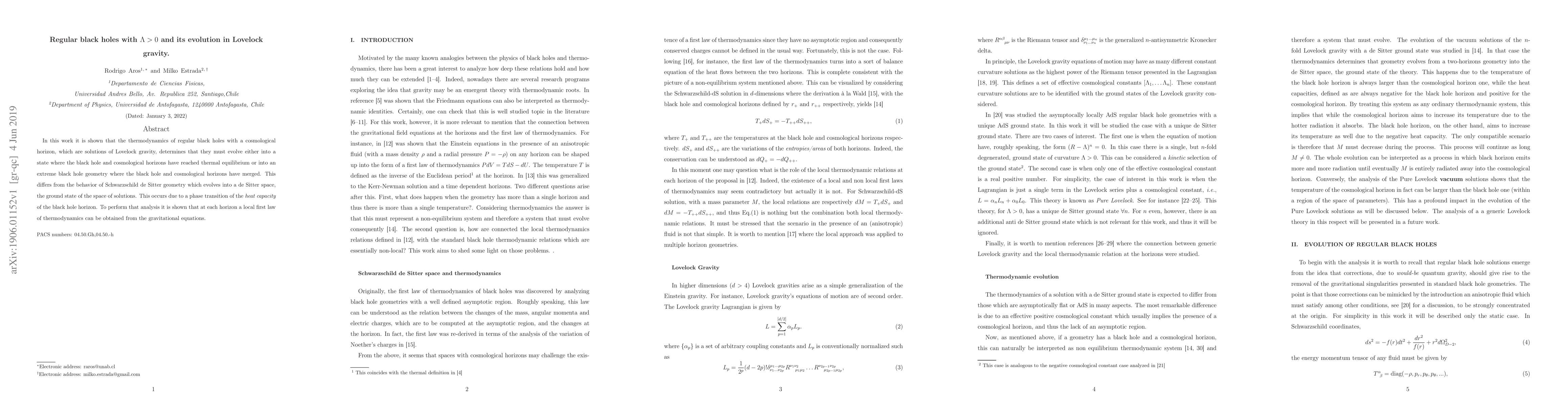 In this work it is shown that the thermodynamics of regular black holes with a cosmological horizon, which are solutions of Lovelock gravity, determines that they must evolve either into a state where the black hole and cosmological horizons have reached thermal equilibrium or into an extreme black hole geometry where the black hole and cosmological horizons have merged. This differs from the behavior of Schwarzschild de Sitter geometry which evolves into a de Sitter space, the ground state of the space of solutions. This occurs due to a phase transition of the heat capacity of the black hole horizon. To perform that analysis it is shown that at each horizon a local first law of thermodynamics can be obtained from the gravitational equations.