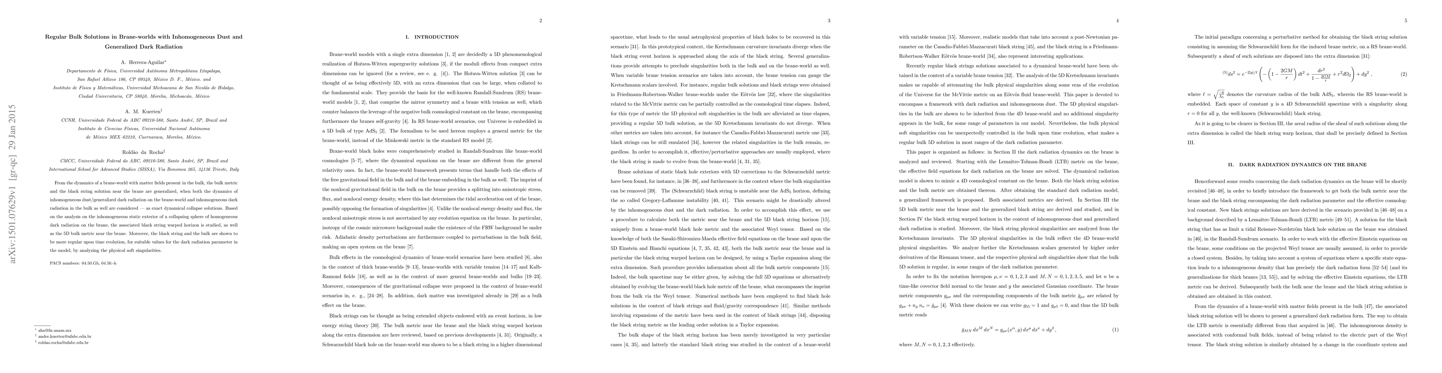 From the dynamics of a brane-world with matter fields present in the bulk, the bulk metric and the black string solution near the brane are generalized, when both the dynamics of inhomogeneous dust/generalized dark radiation on the brane-world and inhomogeneous dark radiation in the bulk as well are considered -- as exact dynamical collapse solutions. Based on the analysis on the inhomogeneous static exterior of a collapsing sphere of homogeneous dark radiation on the brane, the associated black string warped horizon is studied, as well as the 5D bulk metric near the brane. Moreover, the black string and the bulk are shown to be more regular upon time evolution, for suitable values for the dark radiation parameter in the model, by analyzing the physical soft singularities.