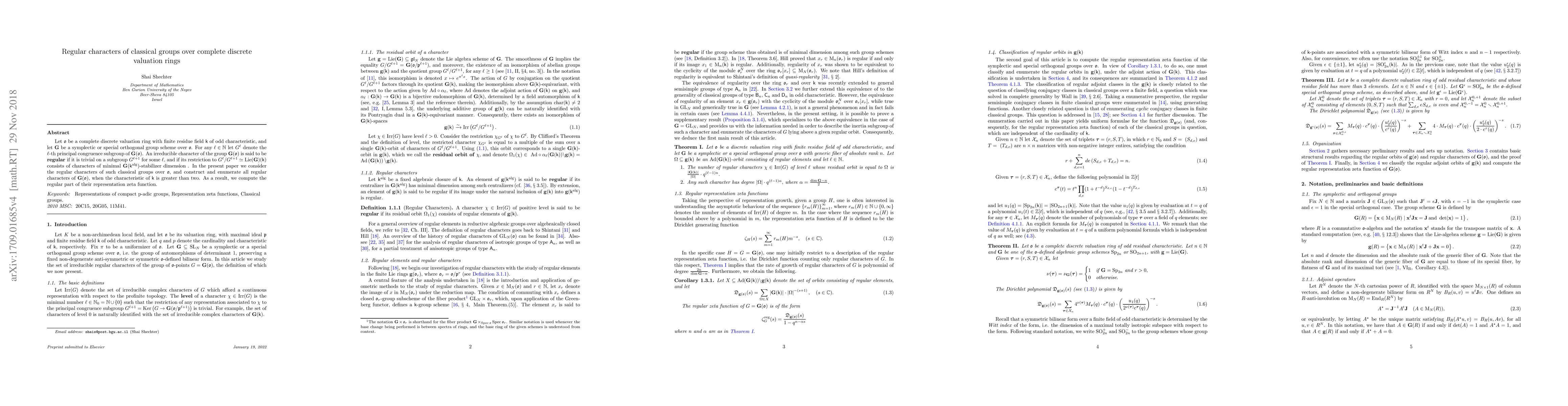 This paper investigates the regular characters of symplectic and special orthogonal groups defined over a complete discrete valuation ring with an odd characteristic residue field greater than two. It constructs and enumerates all regular characters of these groups and computes the regular part of their representation zeta function.