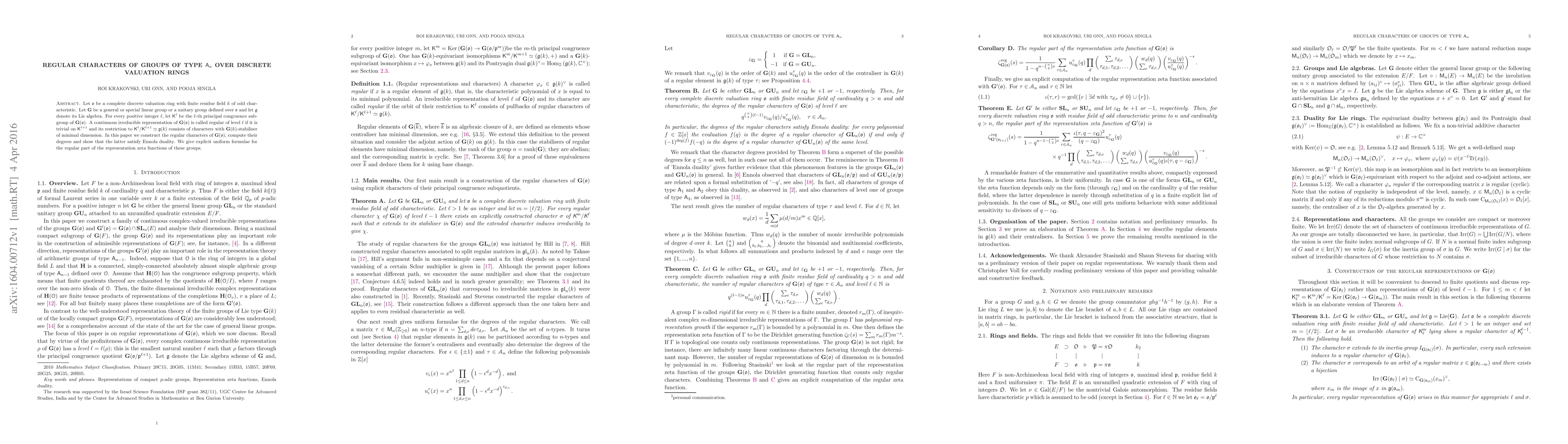 This paper constructs and analyzes regular characters of groups of type A_n over complete discrete valuation rings with odd characteristic, computing their degrees and showing they satisfy Ennola duality, along with providing explicit formulae for the regular part of the representation zeta functions.