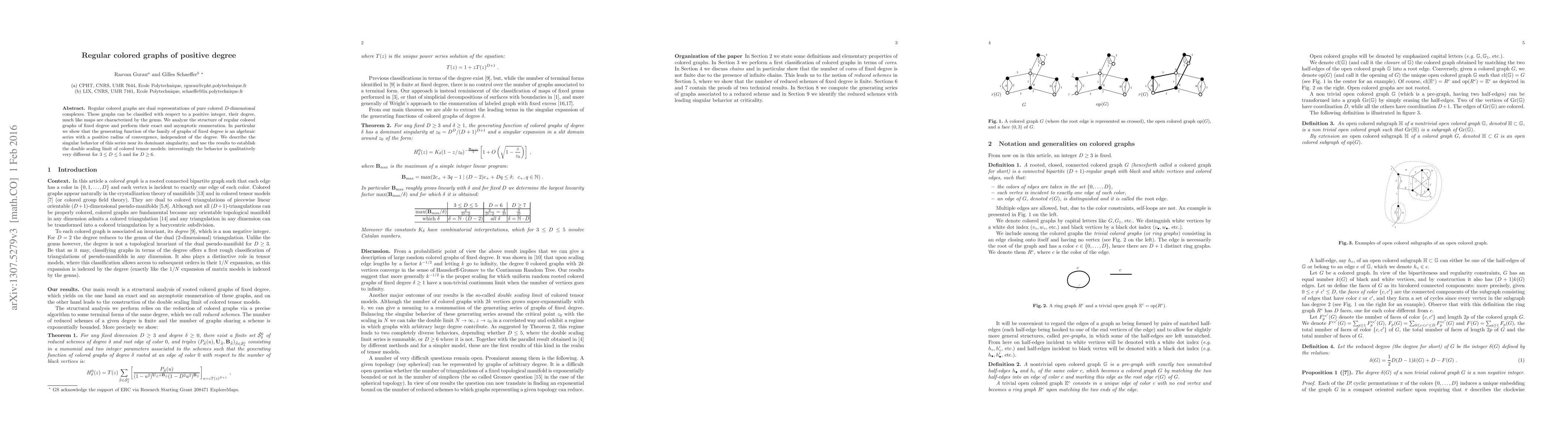 This paper analyzes the structure and enumeration of regular colored graphs of fixed positive degree, demonstrating that their generating function is an algebraic series with a positive radius of convergence, independent of degree. It also explores the singular behavior near the dominant singularity and applies these findings to the double scaling limit of colored tensor models.