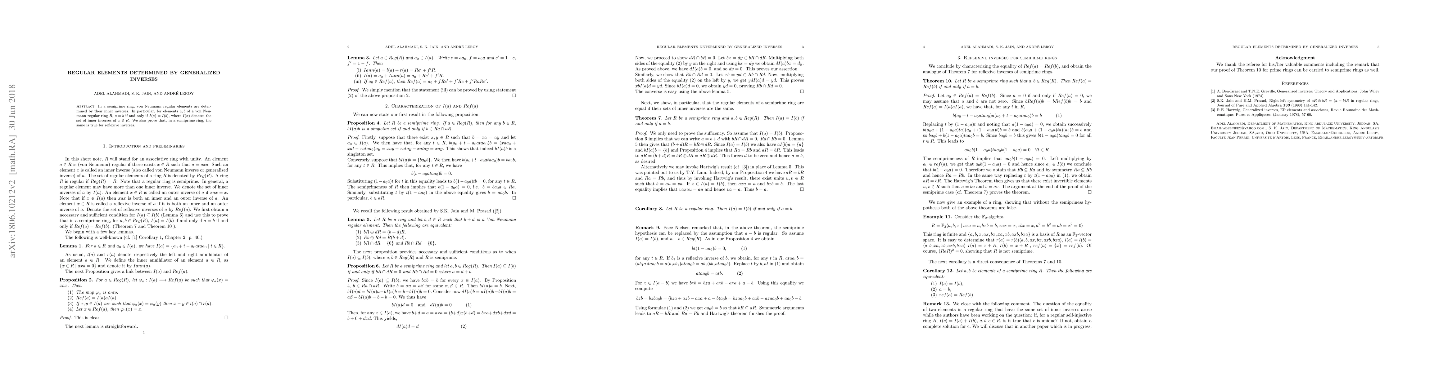 This paper demonstrates that in a semiprime ring, von Neumann regular elements are uniquely identified by their inner inverses, and similarly, reflexive inverses also uniquely determine these elements.