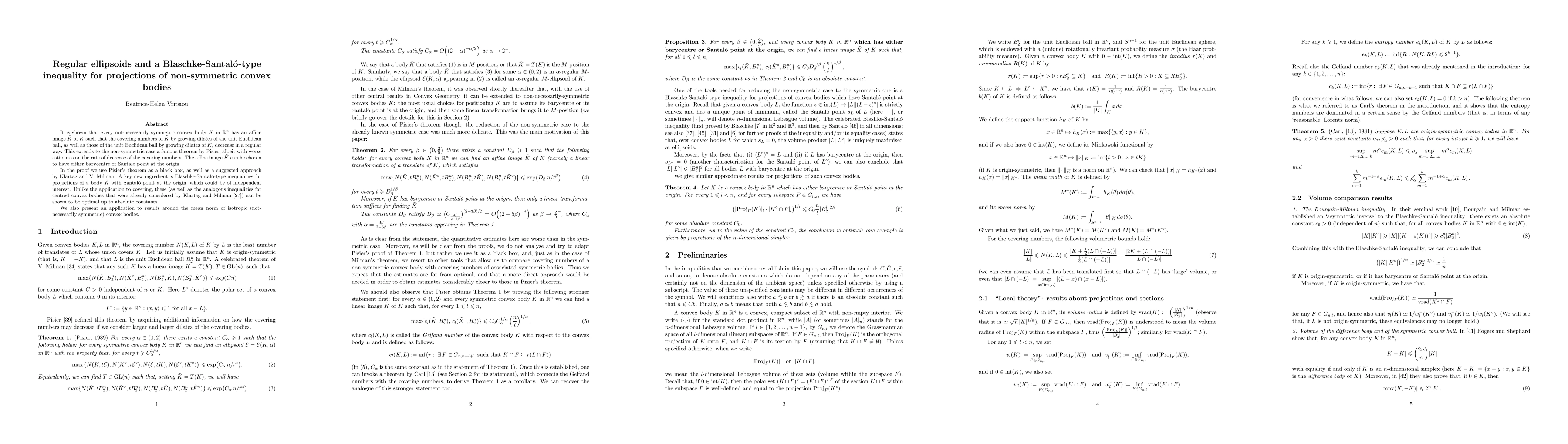 This paper extends Pisier's theorem to non-symmetric convex bodies in ${\mathbb R}^n$, showing that such bodies have affine images with controlled covering numbers by dilates of the unit ball. The key new result is optimal Blaschke-Santaló-type inequalities for projections of these affine images, which are also applied to study the mean norm of isotropic convex bodies.