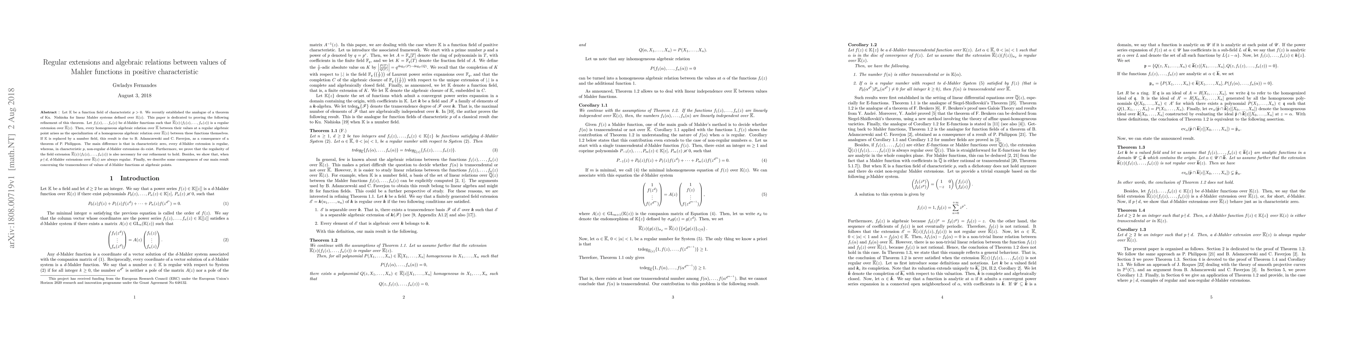 Let $\mathbb{K}$ be a function field of characteristic $p>0$. We recently established the analogue of a theorem of Ku. Nishioka for linear Mahler systems defined over $\mathbb{K}(z)$. This paper is dedicated to proving the following refinement of this theorem. Let $f_{1}(z),\ldots f_{n}(z)$ be $d$-Mahler functions such that $\overline{\mathbb{K}}(z)\left(f_{1}(z),\ldots, f_{n}(z)\right)$ is a regular extension over $\overline{\mathbb{K}}(z)$. Then, every homogeneous algebraic relation over $\overline{\mathbb{K}}$ between their values at a regular algebraic point arises as the specialization of a homogeneous algebraic relation over $\overline{\mathbb{K}}(z)$ between these functions themselves. If $\mathbb{K}$ is replaced by a number field, this result is due to B. Adamczewski and C. Faverjon, as a consequence of a theorem of P. Philippon. The main difference is that in characteristic zero, every $d$-Mahler extension is regular, whereas, in characteristic $p$, non-regular $d$-Mahler extensions do exist. Furthermore, we prove that the regularity of the field extension $\overline{\mathbb{K}}(z)\left(f_{1}(z),\ldots, f_{n}(z)\right)$ is also necessary for our refinement to hold. Besides, we show that, when $p\nmid d$, $d$-Mahler extensions over $\overline{\mathbb{K}}(z)$ are always regular. Finally, we describe some consequences of our main result concerning the transcendence of values of $d$-Mahler functions at algebraic points.