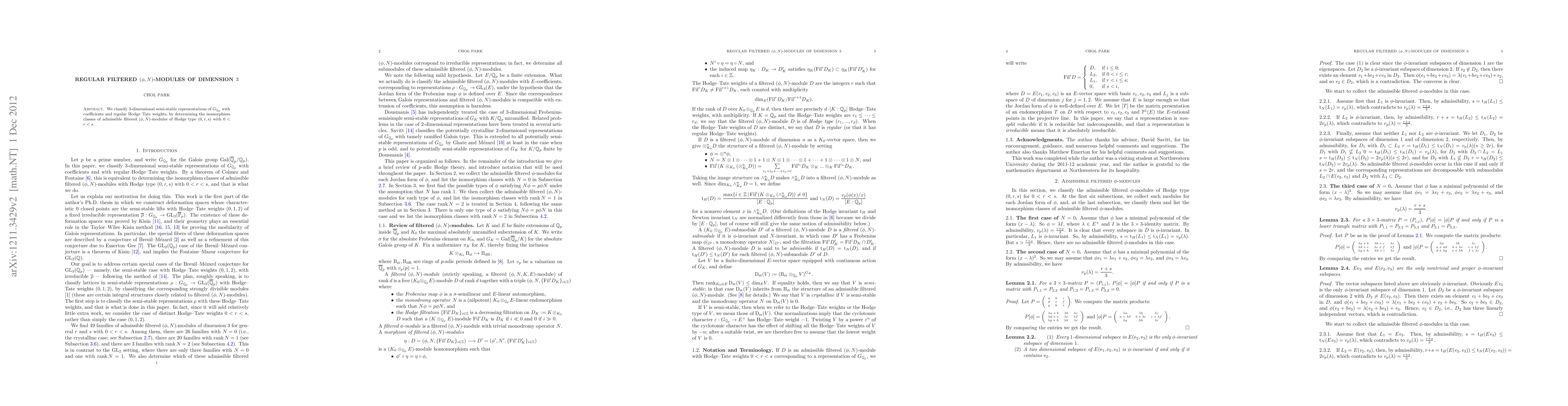 This paper classifies 3-dimensional semi-stable representations of the Galois group of Q_p, focusing on regular filtered (phi,N)-modules with specific Hodge-Tate weights, and determines the isomorphism classes of admissible filtered (phi,N)-modules of Hodge type (0,r,s) with 0 < r < s.