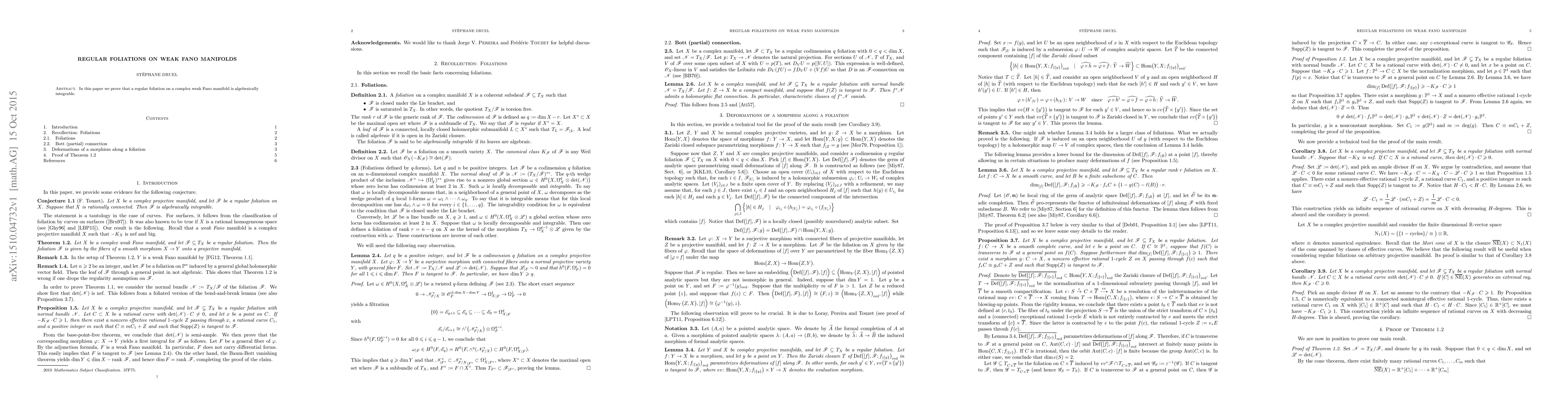 In this paper we prove that a regular foliation on a complex weak Fano manifold is algebraically integrable.