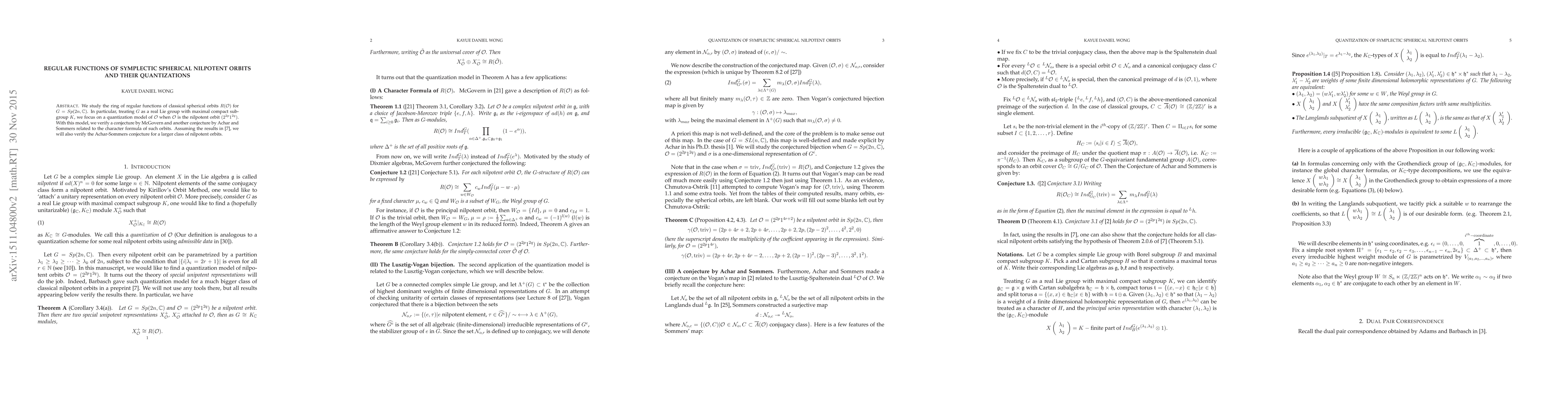 We study the ring of regular functions of classical spherical orbits $R(\mathcal{O})$ for $G = Sp(2n,\mathbb{C})$. In particular, treating $G$ as a real Lie group with maximal compact subgroup $K$, we focus on a quantization model of $\mathcal{O}$ when $\mathcal{O}$ is the nilpotent orbit $(2^{2p}1^{2q})$. With this model, we verify a conjecture by McGovern and another conjecture by Achar and Sommers for such orbits. Assuming the results in [Barbasch 2008], we will also verify the Achar-Sommers conjecture for a larger class of nilpotent orbits.