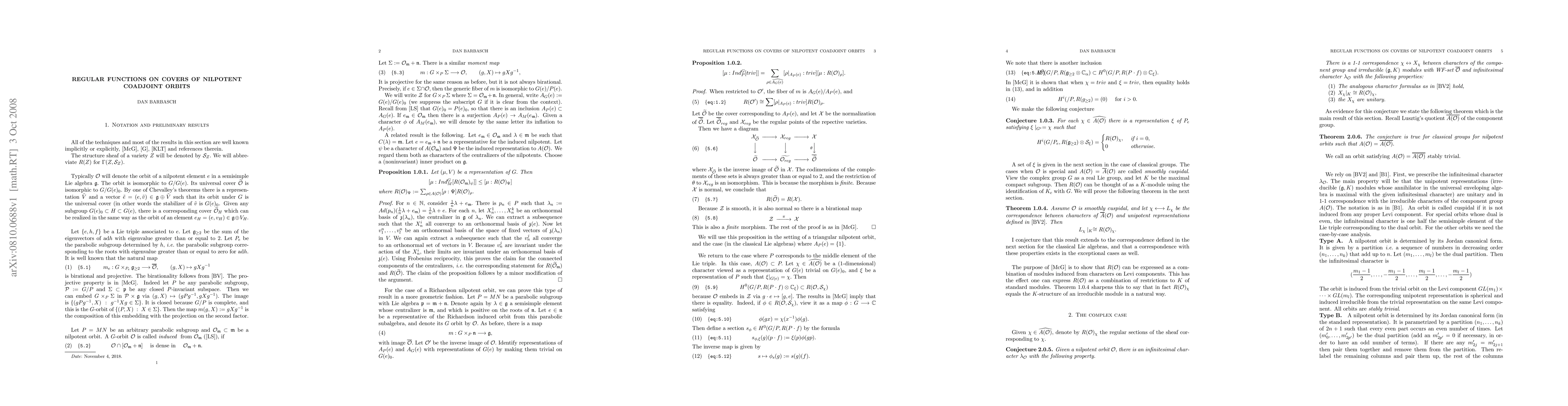 This paper investigates the connection between regular functions on covers of nilpotent coadjoint orbits and their relation to local systems and unipotent representations in complex groups. The study elucidates how these functions behave under the given algebraic structures.