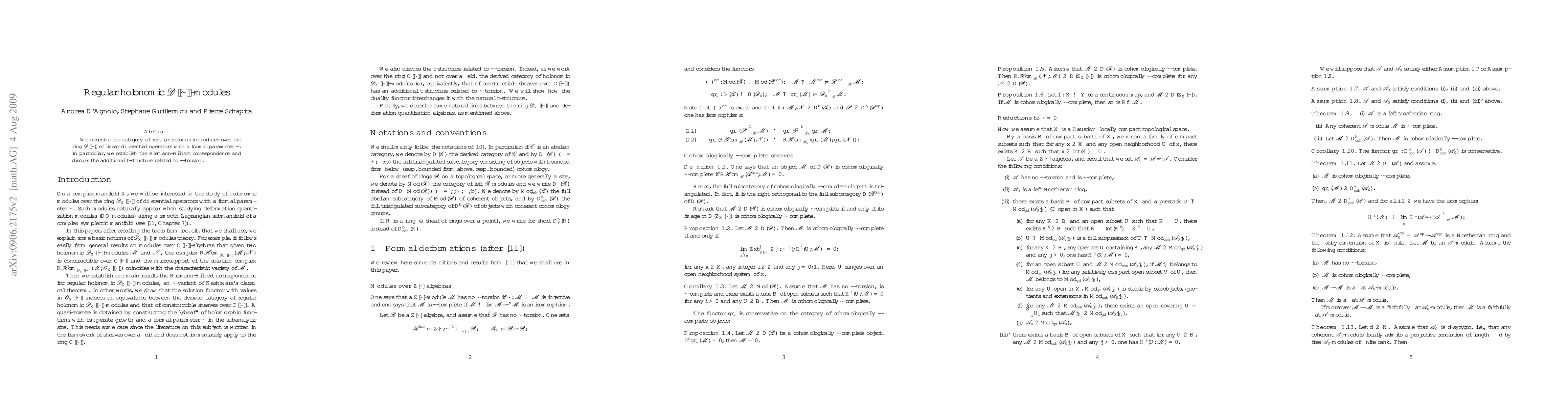 Summary: This paper explores the category of regular holonomic D[[h]]-modules, establishing the Riemann-Hilbert correspondence and introducing a t-structure associated with h-torsion, contributing to the understanding of differential equations with formal parameters.