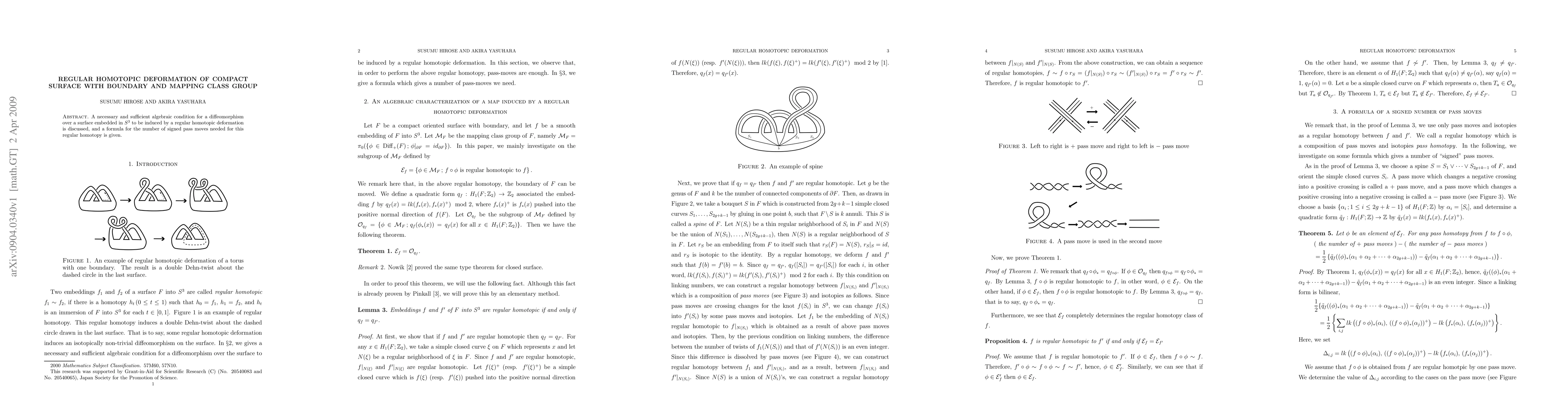 A necessary and sufficient algebraic condition for a diffeomorphism over a surface embedded in the 3-sphere to be induced by a regular homotopic deformation is discussed, and a formula for the number of signed pass moves needed for this regular homotopy is given.
