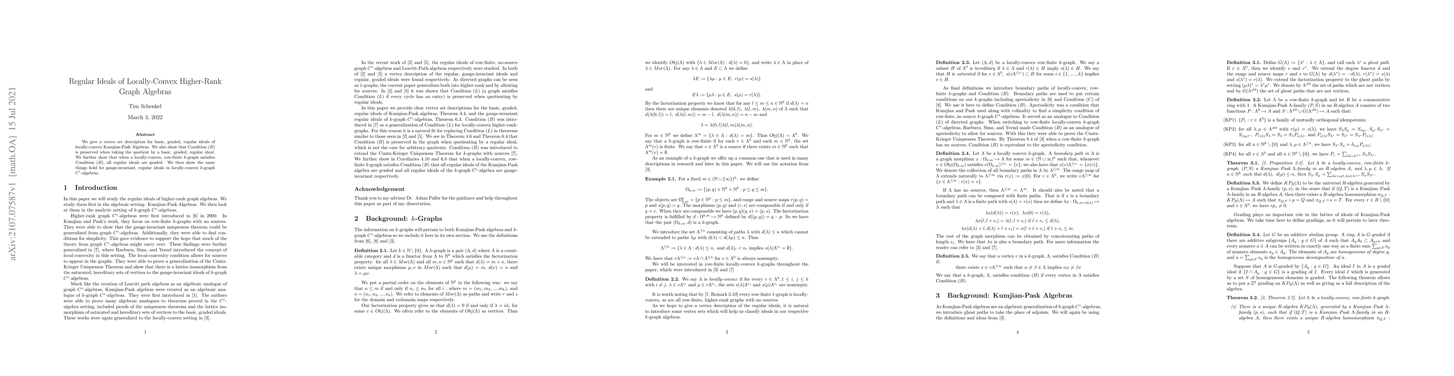 This paper provides a vertex set description for basic, graded, regular ideals in locally-convex Kumjian-Pask Algebras and demonstrates that Condition (B) remains intact upon quotienting by such ideals. It also proves that all regular ideals in locally-convex row-finite k-graphs satisfying Condition (B) are graded, extending these findings to gauge-invariant, regular ideals in locally-convex k-graph C*-algebras.