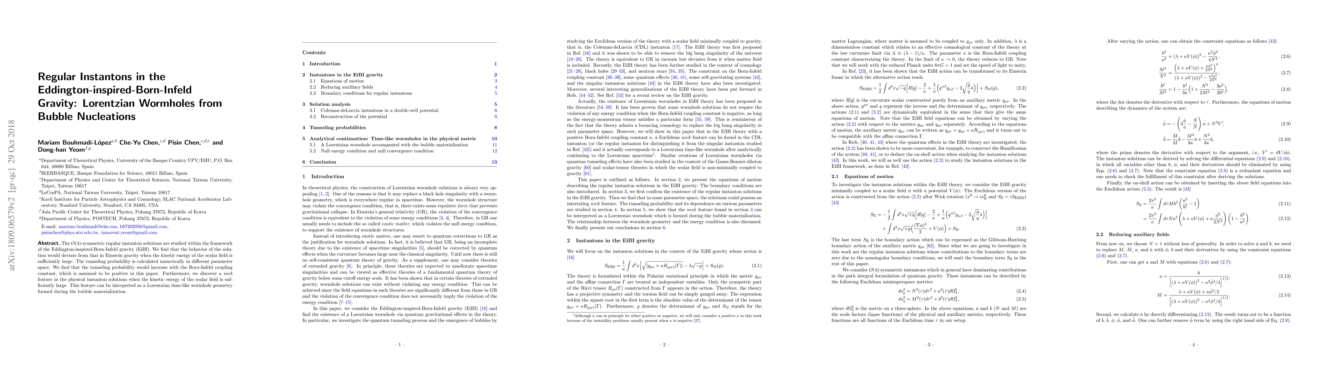 This research explores O(4)-symmetric regular instanton solutions in Eddington-inspired Born-Infeld (EiBI) gravity, revealing deviations from Einstein gravity under high scalar field kinetic energy. It identifies an increased tunneling probability with higher Born-Infeld coupling and uncovers a neck feature interpreted as a Lorentzian wormhole from bubble nucleation.
