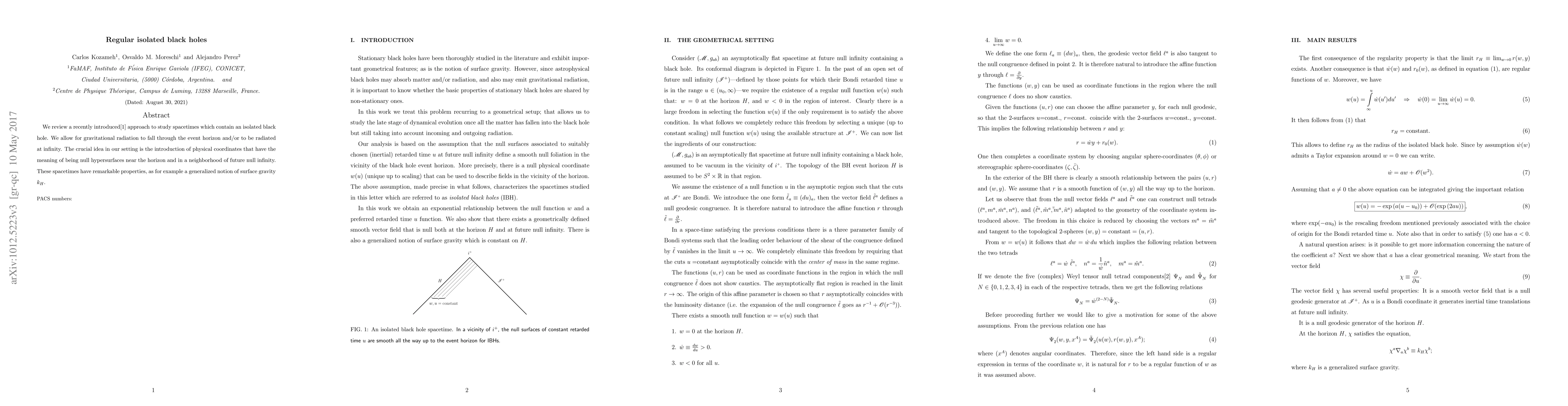 We define a family of spacetimes representing isolated black holes exhibiting remarkable universal properties which are natural generalizations from stationary spacetimes. They admit a well defined notion of surface gravity k_H. This generalized surface gravity mediates an exponential relation between a regular null coordinate w near the horizon and an asymptotic Bondi null coordinate u defined in the vicinity of future null infinity. Our construction provides a framework for the study of gravitational collapse of an isolated system in its late stage of evolution.