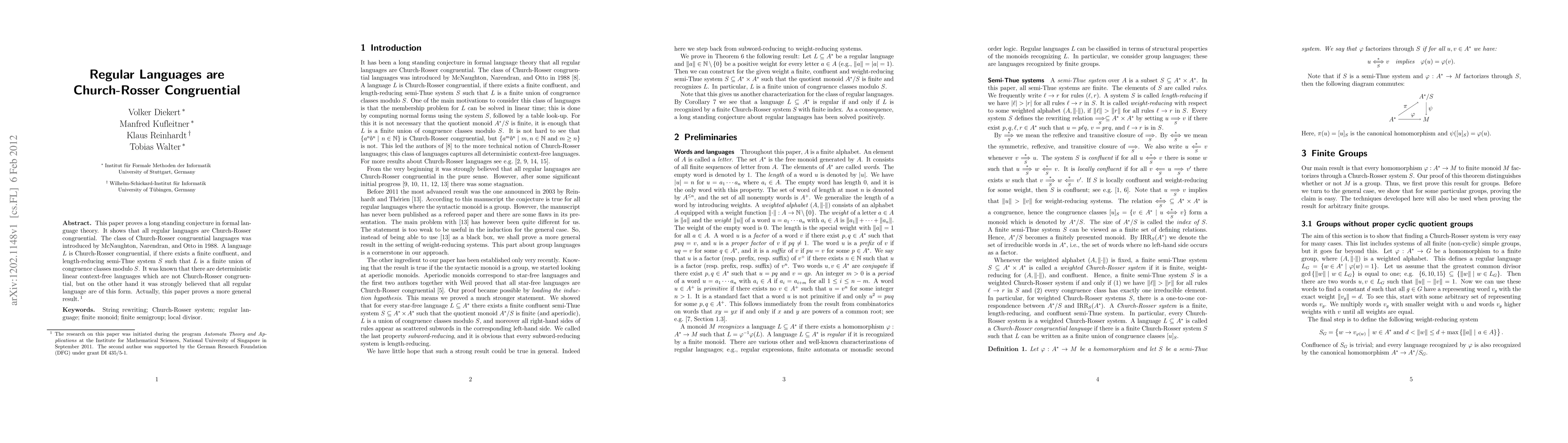 This paper proves a long standing conjecture in formal language theory. It shows that all regular languages are Church-Rosser congruential. The class of Church-Rosser congruential languages was introduced by McNaughton, Narendran, and Otto in 1988. A language L is Church-Rosser congruential, if there exists a finite confluent, and length-reducing semi-Thue system S such that L is a finite union of congruence classes modulo S. It was known that there are deterministic linear context-free languages which are not Church-Rosser congruential, but on the other hand it was strongly believed that all regular language are of this form. Actually, this paper proves a more general result.