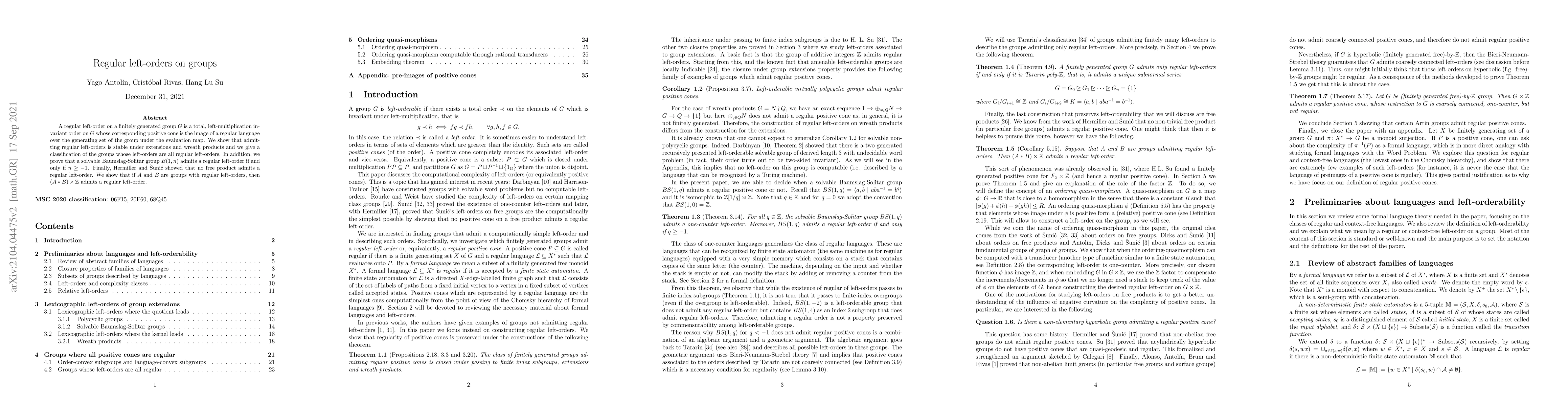 This paper explores the concept of regular left-orders on finitely generated groups, demonstrating stability under extensions and wreath products and classifying groups where all left-orders are regular. It concludes with a result on solvable Baumslag-Solitar groups and a notable exception for free products, while showing that certain group products with $\mathbb{Z}$ can still admit regular left-orders.