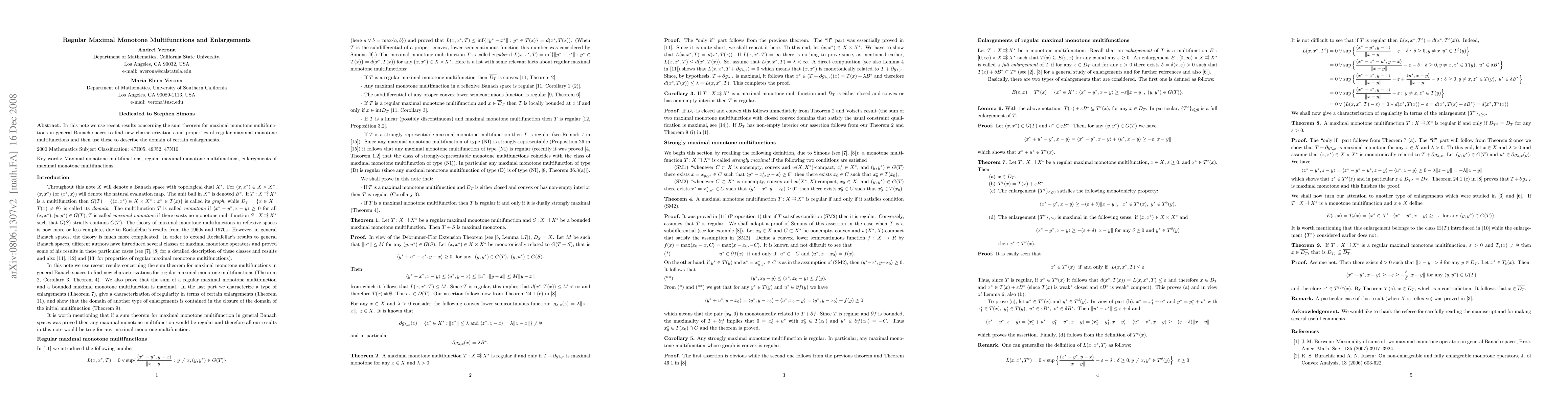 This paper explores the sum theorem for maximal monotone multifunctions in Banach spaces to characterize regular maximal monotone multifunctions and to describe the domain of their associated enlargements. The findings provide new insights into the properties and applications of these mathematical constructs.