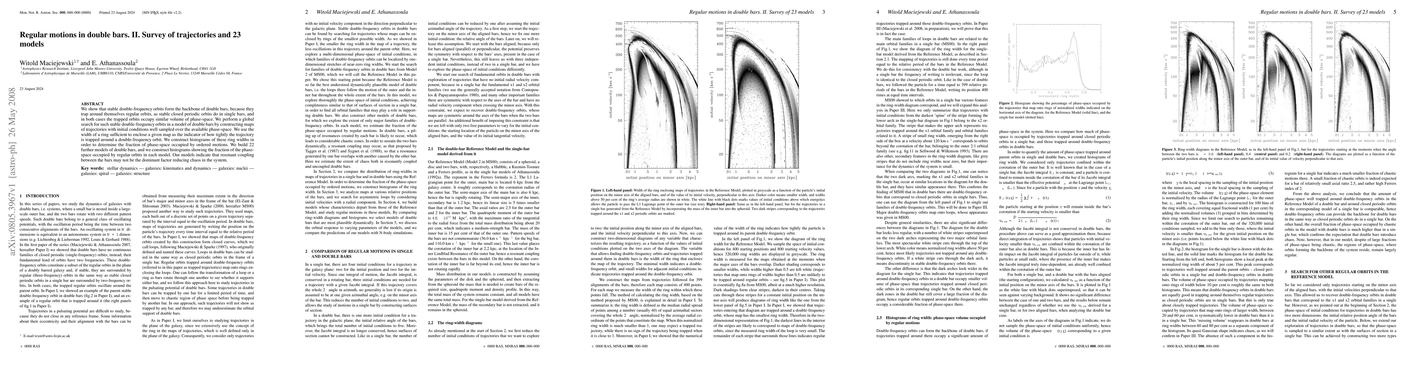 This paper investigates the stable double-frequency orbits in double bars, showing they trap regular orbits similarly to single bars. The study constructs trajectory maps and histograms to quantify the phase-space occupied by ordered motions across 23 models, concluding that resonant coupling is not the main factor reducing chaos.
