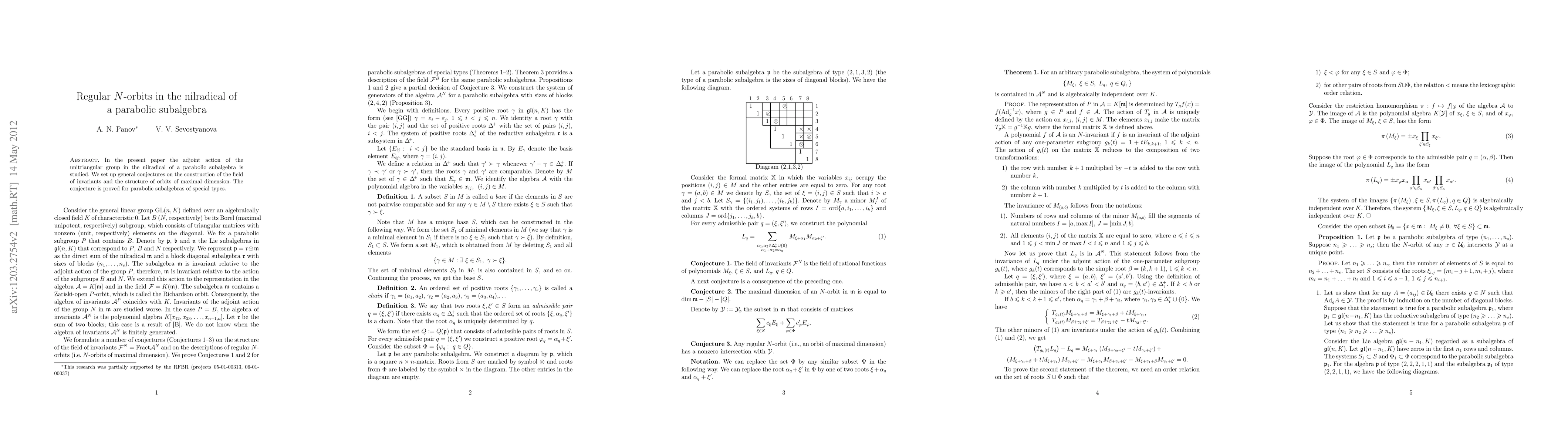 Researchers studied the adjoint action of the unitriangular group on a parabolic subalgebra's nilradical, proposing and proving conjectures about the field of invariants and maximal dimension orbits.