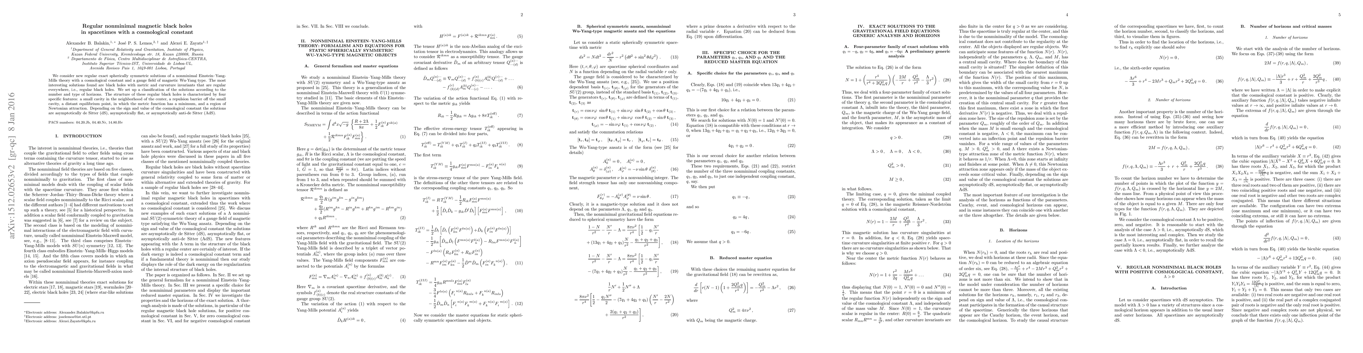 We consider new regular exact spherically symmetric solutions of a nonminimal Einstein--Yang-Mills theory with a cosmological constant and a gauge field of magnetic Wu-Yang type. The most interesting solutions found are black holes with metric and curvature invariants that are regular everywhere, i.e., regular black holes. We set up a classification of the solutions according to the number and type of horizons. The structure of these regular black holes is characterized by four specific features: a small cavity in the neighborhood of the center, a repulsion barrier off the small cavity, a distant equilibrium point, in which the metric function has a minimum, and a region of Newtonian attraction. Depending on the sign and value of the cosmological constant the solutions are asymptotically de Sitter (dS), asymptotically flat, or asymptotically anti-de Sitter (AdS).