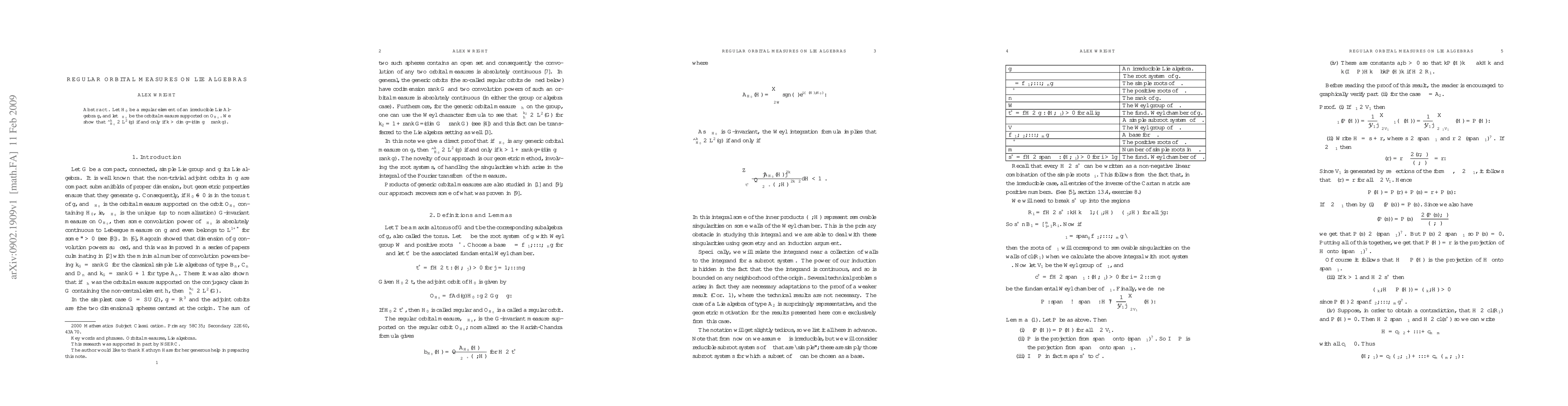 Let H be a regular element of an irreducible Lie Algebra g, and let mu be the orbital measure supported on the Adjoint orbit of H. We show that the k-th power of the Fourier transform of mu is in L^2(g) if and only if k > dim g/(dim g-rank g).