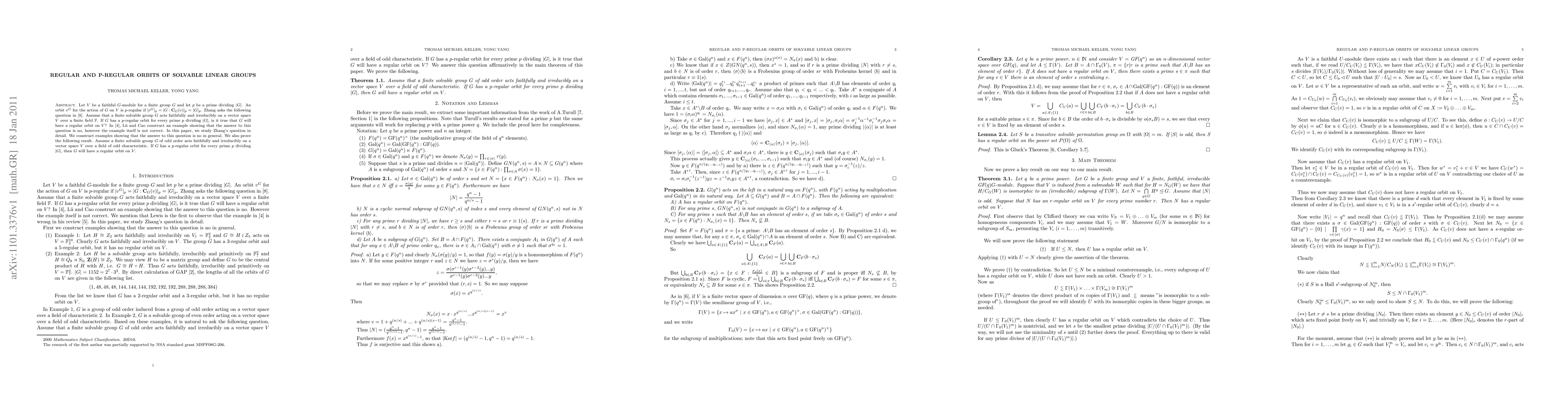 Let $V$ be a faithful $G$-module for a finite group $G$ and let $p$ be a prime dividing $|G|$. An orbit $v^G$ for the action of $G$ on $V$ is $p$-regular if $|v^G|_p=|G:\bC_G(v)|_p=|G|_p$. Zhang asks the following question in \cite{Zhang}. Assume that a finite solvable group $G$ acts faithfully and irreducibly on a vector space $V$ over a finite field $\FF$. If $G$ has a $p$-regular orbit for every prime $p$ dividing $|G|$, is it true that $G$ will have a regular orbit on $V$? In \cite{LuCao}, L\"{u} and Cao construct an example showing that the answer to this question is no, however the example itself is not correct. In this paper, we study Zhang's question in detail. We construct examples showing that the answer to this question is no in general. We also prove the following result. Assume a finite solvable group $G$ of odd order acts faithfully and irreducibly on a vector space $V$ over a field of odd characteristic. If $G$ has a $p$-regular orbit for every prime $p$ dividing $|G|$, then $G$ will have a regular orbit on $V$.