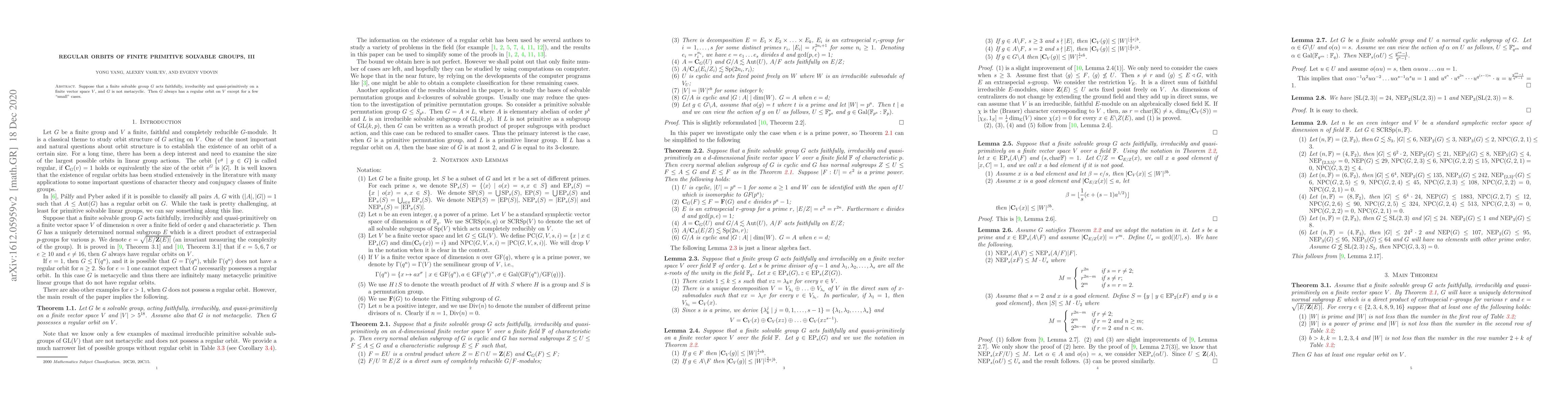 A finite solvable group acting faithfully on a vector space has regular orbits if its normal subgroup is a direct product of extraspecial p-groups for specific values of e, where e is the square root of the index of the center of E.