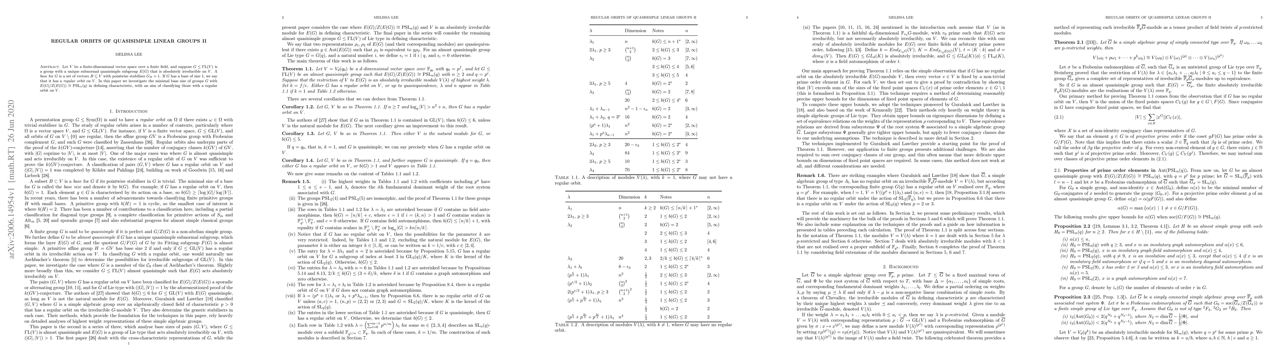 Let $V$ be a finite-dimensional vector space over a finite field, and suppose $G \leq \Gamma \mathrm{L}(V)$ is a group with a unique subnormal quasisimple subgroup $E(G)$ that is absolutely irreducible on $V$. A base for $G$ is a set of vectors $B\subseteq V$ with pointwise stabiliser $G_B=1$. If $G$ has a base of size 1, we say that it has a regular orbit on $V$. In this paper we investigate the minimal base size of groups $G$ with $E(G)/Z(E(G)) \cong \mathrm{PSL}_n(q)$ in defining characteristic, with an aim of classifying those with a regular orbit on $V$.