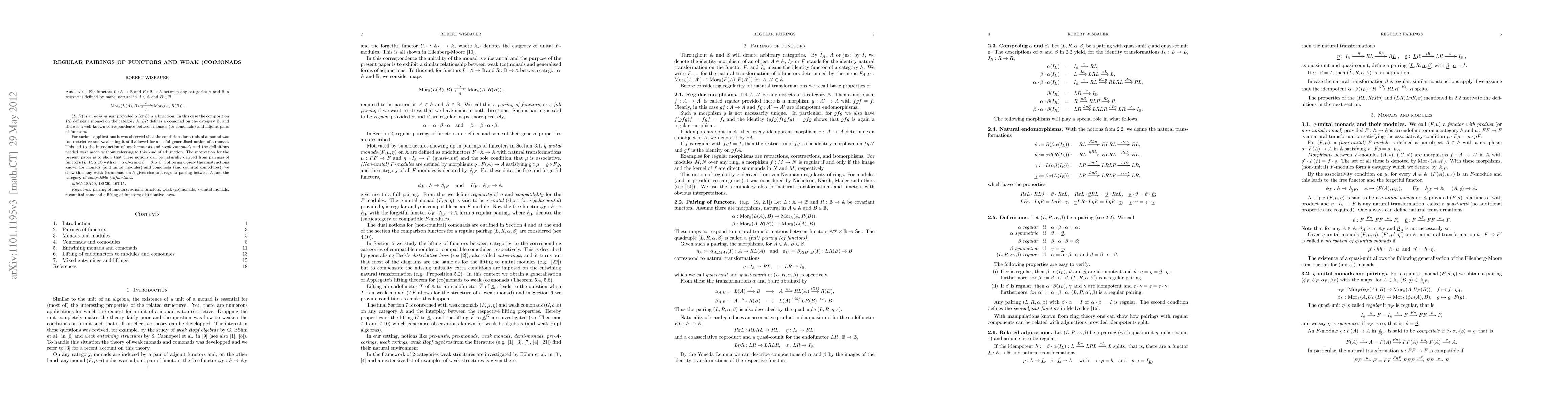 For functors $L:\A\to \B$ and $R:\B\to \A$ between any categories $\A$ and $\B$, a {\em pairing} is defined by maps, natural in $A\in \A$ and $B\in \B$, $$\xymatrix{\Mor_\B (L(A),B) \ar@<0.5ex>[r]^{\alpha} & \Mor_\A (A,R(B))\ar@<0.5ex>[l]^{\beta}}.$$ $(L,R)$ is an {\em adjoint pair} provided $\alpha$ (or $\beta$) is a bijection. In this case the composition $RL$ defines a monad on the category $\A$, $LR$ defines a comonad on the category $\B$, and there is a well-known correspondence between monads (or comonads) and adjoint pairs of functors. For various applications it was observed that the conditions for a unit of a monad was too restrictive and weakening it still allowed for a useful generalised notion of a monad. This led to the introduction of {\em weak monads} and {\em weak comonads} and the definitions needed were made without referring to this kind of adjunction. The motivation for the present paper is to show that these notions can be naturally derived from pairings of functors $(L,R,\alpha,\beta)$ with $\alpha = \alpha\dcirc \beta\dcirc \alpha$ and $\beta = \beta \dcirc\alpha\dcirc\beta$. Following closely the constructions known for monads (and unital modules) and comonads (and counital comodules), we show that any weak (co)monad on $\A$ gives rise to a regular pairing between $\A$ and the category of {\em compatible (co)modules}.