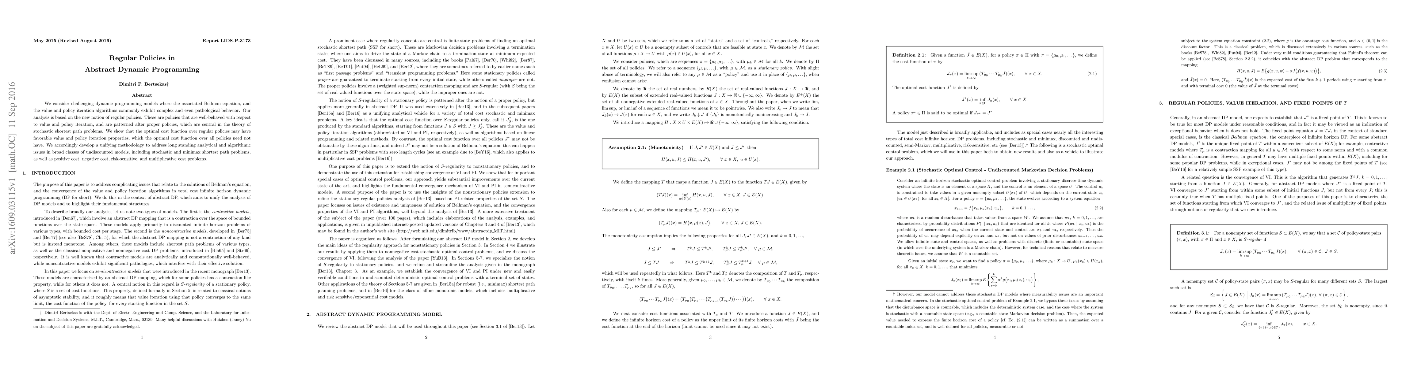 A new approach to dynamic programming focuses on regular policies that exhibit favorable behavior in value and policy iteration, offering a unifying methodology for solving various types of models.