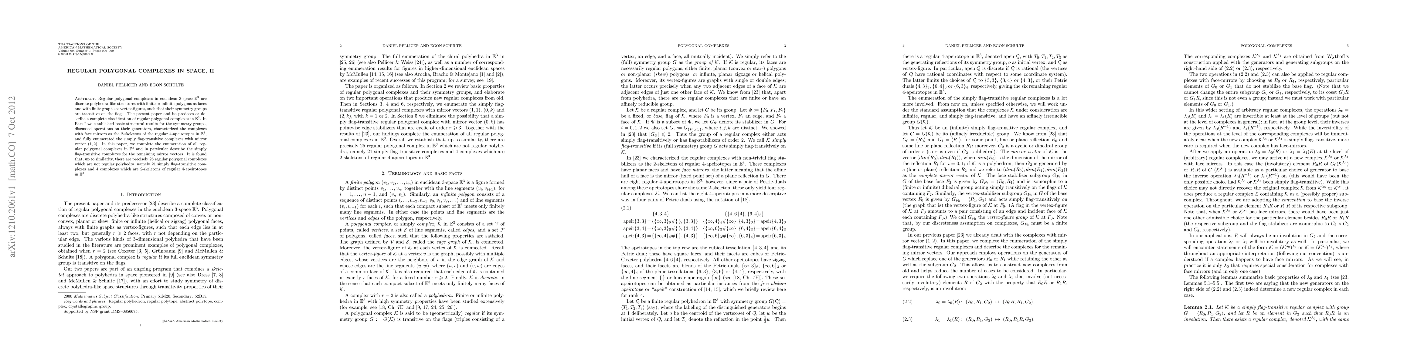 This paper completes the classification of regular polygonal complexes in 3-dimensional Euclidean space, detailing the enumeration of 25 such complexes beyond regular polyhedra, including 21 simply flag-transitive types and 4 derived from regular 4-apeirotopes. The study builds on foundational structural results and symmetry group analyses established in its predecessor.