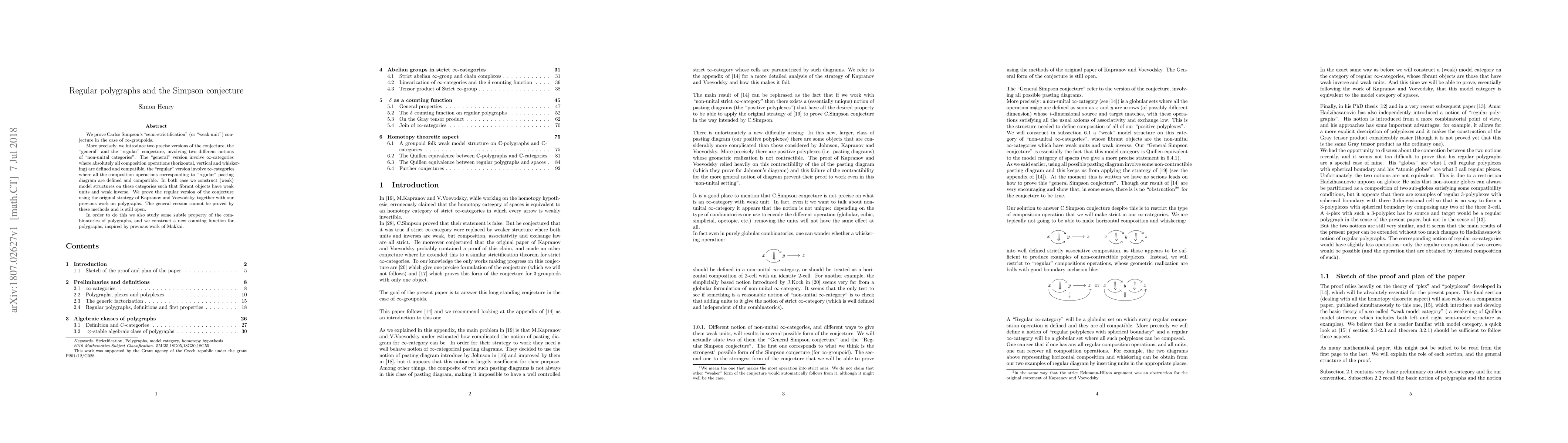 This paper proves Carlos Simpson's conjecture on semi-strictification in the context of infinity-groupoids, specifically the "regular" version involving compatible composition operations for regular pasting diagrams. The authors utilize a strategy from Kapranov and Voevodsky, along with new constructions and a novel counting function for polygraphs.