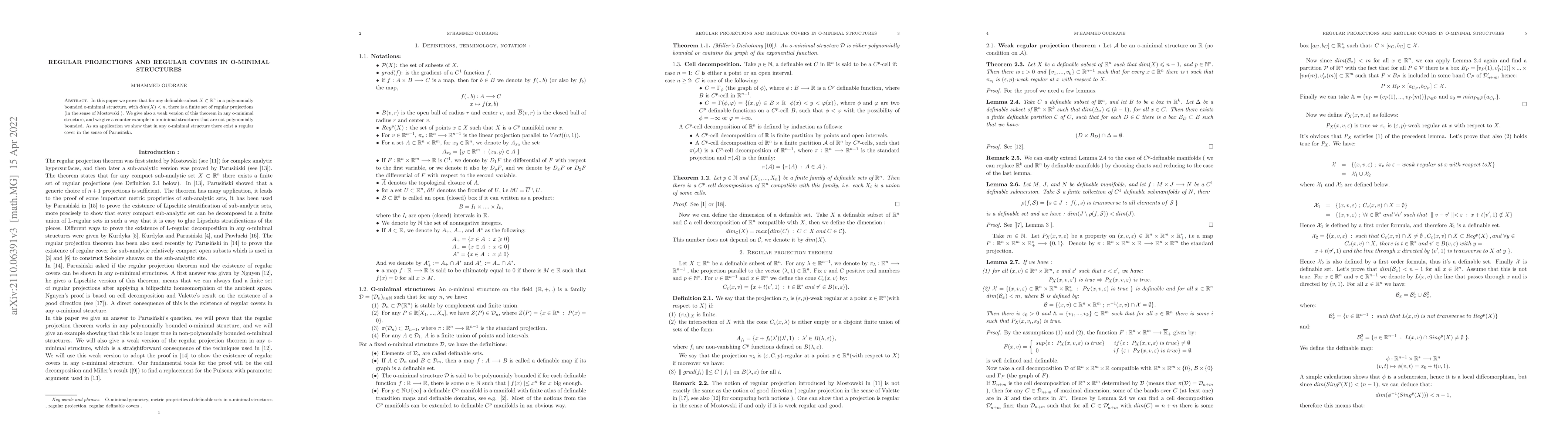 This paper proves the existence of a finite set of regular projections for any definable subset of lower dimension in polynomially bounded o-minimal structures, provides a weaker version for general o-minimal structures, and shows a counterexample for unbounded structures. It concludes with the existence of regular covers in any o-minimal structure.