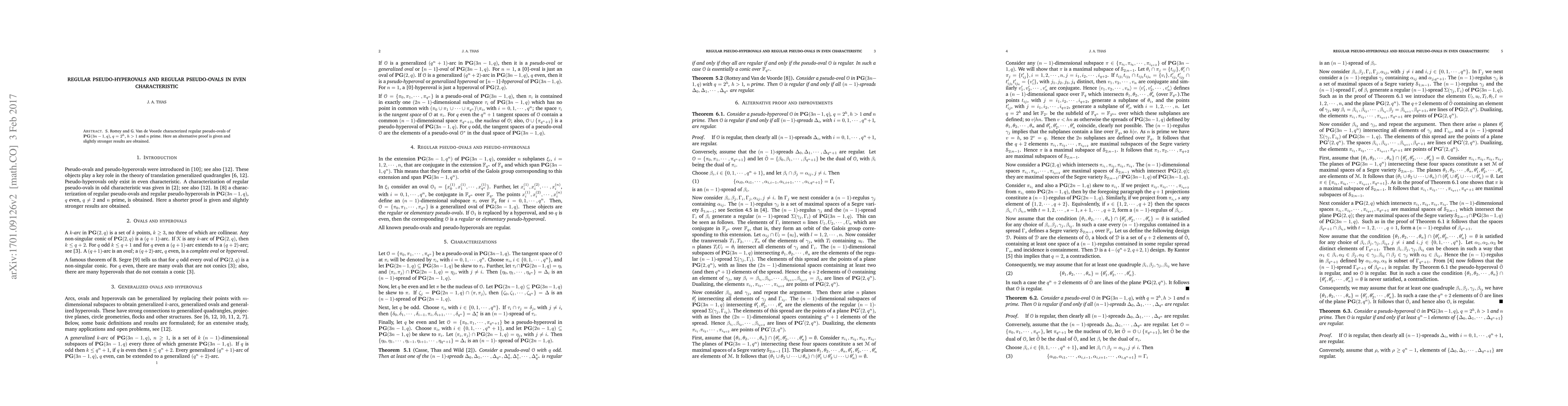 Summary: This paper presents an alternative proof and extends the characterization of regular pseudo-ovals in PG(3n-1, q) for even characteristic q, improving upon previous results by Rottey and Van de Voorde.