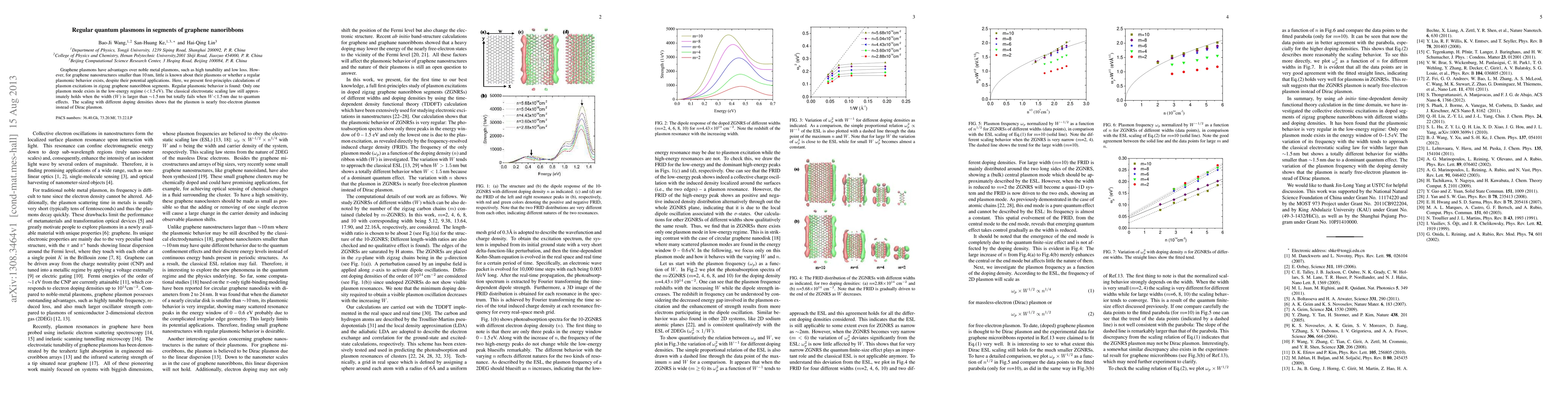 Summary: First-principles calculations reveal regular plasmonic behavior in zigzag graphene nanoribbon segments, with a single low-energy plasmon mode. Quantum effects disrupt classical electrostatic scaling laws when the ribbon width is less than 1.5 nm.