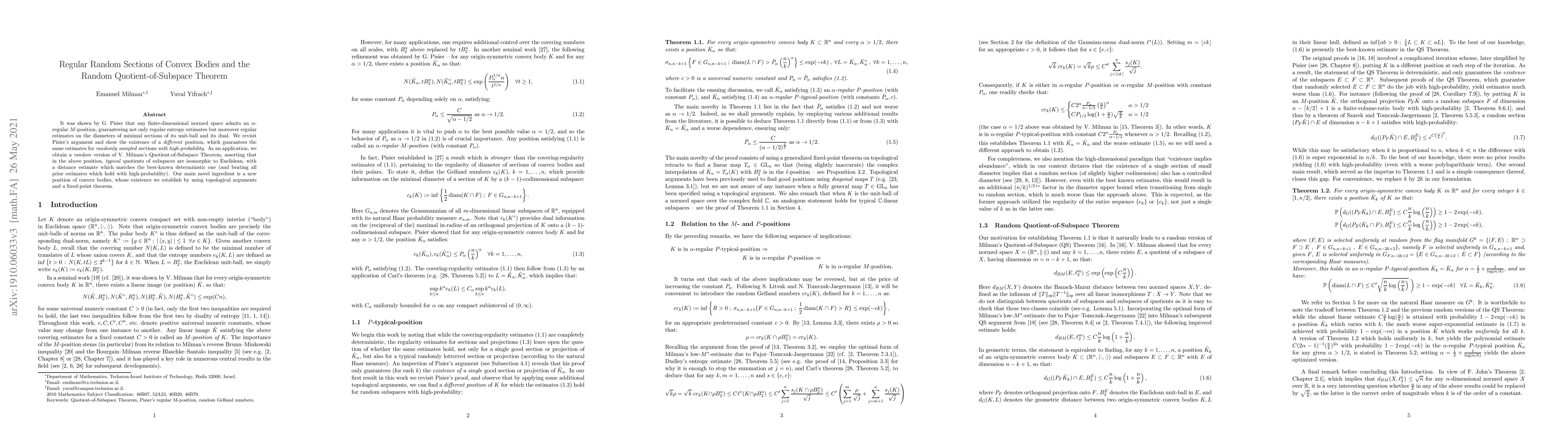 Researchers find a new position for convex bodies that guarantees high-probability estimates of diameters and quotients of subspaces, leading to a stronger version of V. Milman's Quotient-of-Subspace Theorem.