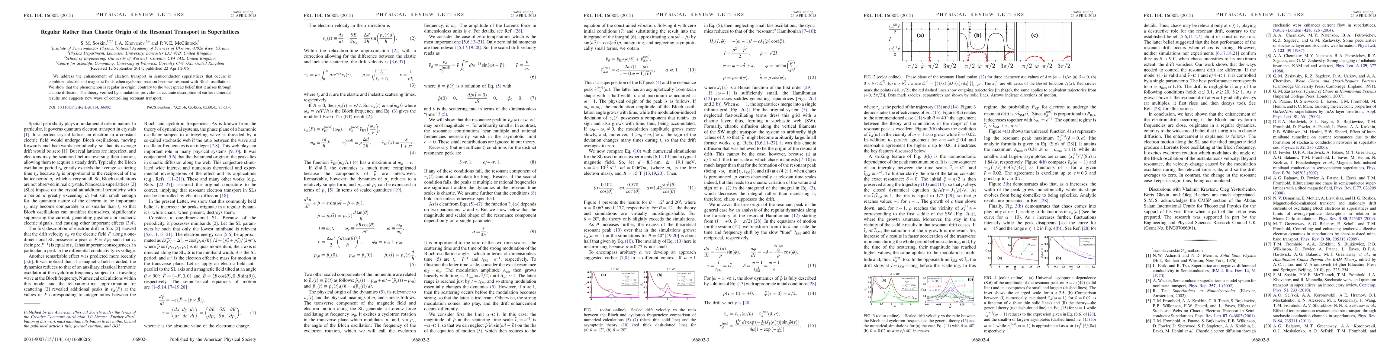 We address the enhancement of electron drift in semiconductor superlattices of nanometre scale that occurs in combined electric and tilted magnetic fields if Bloch oscillations become resonant with cyclotron rotation in the transverse plane. We uncover the true dynamical mechanism of the phenomenon: the electron dynamics at relevant time-scales is regular or almost regular, contrary to the widespread belief that the enhancement arises through chaotic diffusion between collisions. The theory provides an accurate description of earlier numerical simulations, predicts new remarkable features verified by simulations, and suggests new ways of controlling resonant transport.