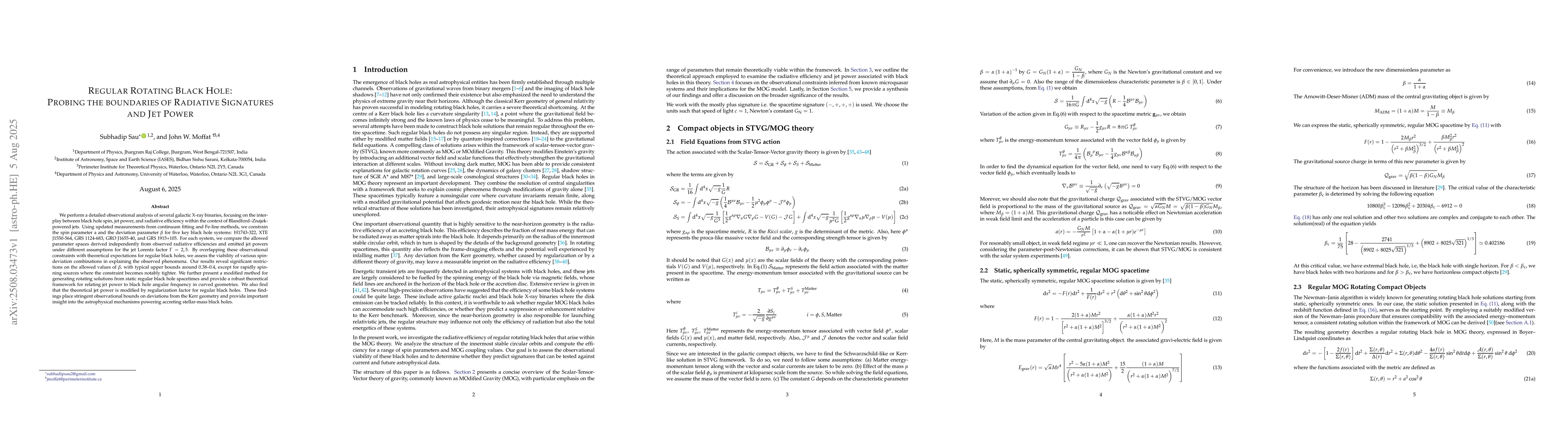 We perform a detailed observational analysis of several galactic X-ray binaries, focusing on the interplay between black hole spin, jet power, and radiative efficiency within the context of Blandford-Znajek-powered jets. Using updated measurements from continuum fitting and Fe-line methods, we constrain the spin parameter a and the deviation parameter $\beta$ for five key black hole systems: H1743-322, XTE J1550-564, GRS 1124-683, GRO J1655-40, and GRS 1915+105. For each system, we compare the allowed parameter spaces derived independently from observed radiative efficiencies and emitted jet powers under different assumptions for the jet Lorentz factor $\Gamma=2,5$. By overlapping these observational constraints with theoretical expectations for regular black holes, we assess the viability of various spin-deviation combinations in explaining the observed phenomena. Our results reveal significant restrictions on the allowed values of $\beta$, with typical upper bounds around 0.38 - 0.4, except for rapidly spinning sources where the constraint becomes notably tighter. We further present a modified method for generating rotating solutions from static regular black hole spacetimes and provide a robust theoretical framework for relating jet power to black hole angular frequency in curved geometries. We also find that the theoretical jet power is modified by regularization factor for regular black holes. These findings place stringent observational bounds on deviations from the Kerr geometry and provide important insight into the astrophysical mechanisms powering accreting stellar-mass black holes.