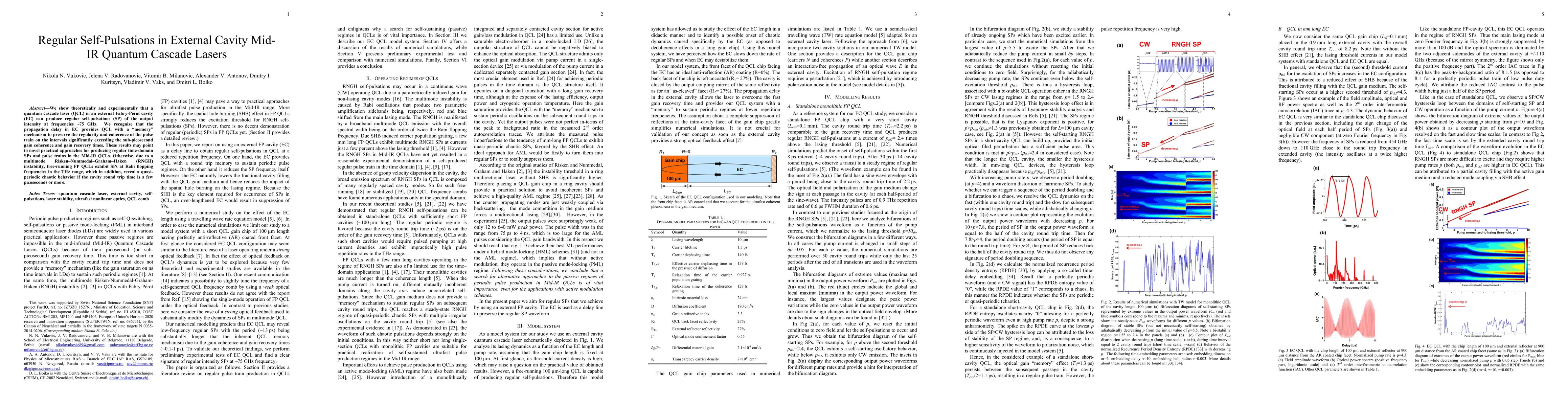 We show theoretically and experimentally that a quantum cascade laser (QCL) in an external Fabry-Perot cavity (EC) can produce regular self-pulsations (SP) of the output intensity at frequencies ~75 GHz. We recognize that the propagation delay in EC provides QCL with a "memory" mechanism to preserve the regularity and coherence of the pulse train on the intervals significantly exceeding the sub-picosecond gain coherence and gain recovery times. These results may point to novel practical approaches for producing regular time-domain SPs and pulse trains in the Mid-IR QCLs. Otherwise, due to a multimode Risken-Nummedal-Graham-Haken (RNGH) instability, free-running FP QCLs exhibit SPs at Rabi flopping frequencies in the THz range, which in addition, reveal a quasi-periodic chaotic behavior if the cavity round trip time is a few picoseconds or more.