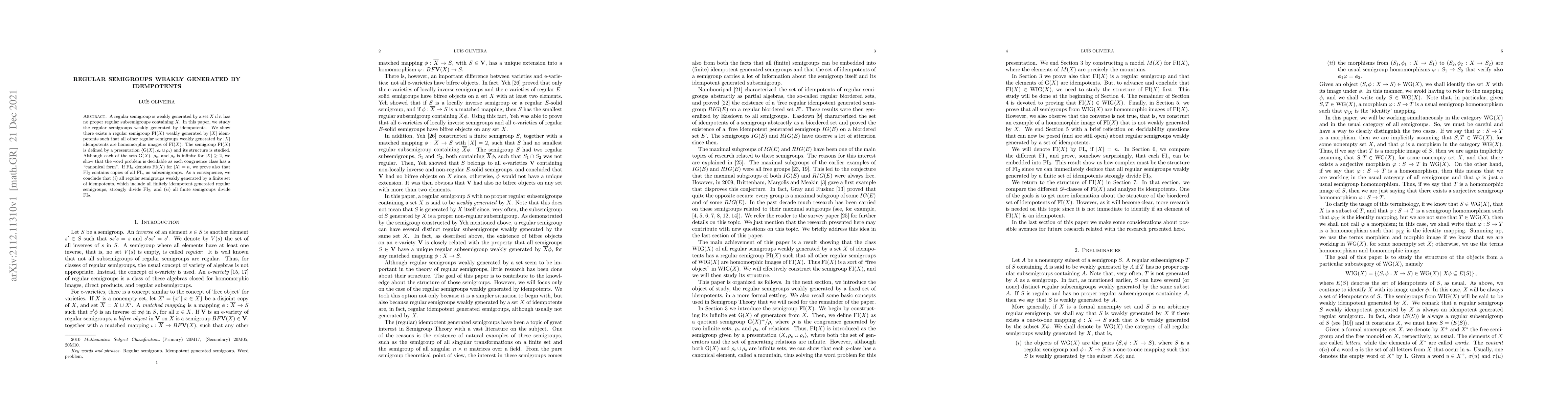 This paper investigates regular semigroups that are weakly generated by idempotents, demonstrating the existence of a specific semigroup FI(X) that serves as a universal homomorphic image for all such semigroups. The structure of FI(X) is shown to be decidable, and it is proven that FI_2 contains all larger FI_n as subsemigroups, leading to the conclusion that all relevant finite semigroups divide FI_2.
