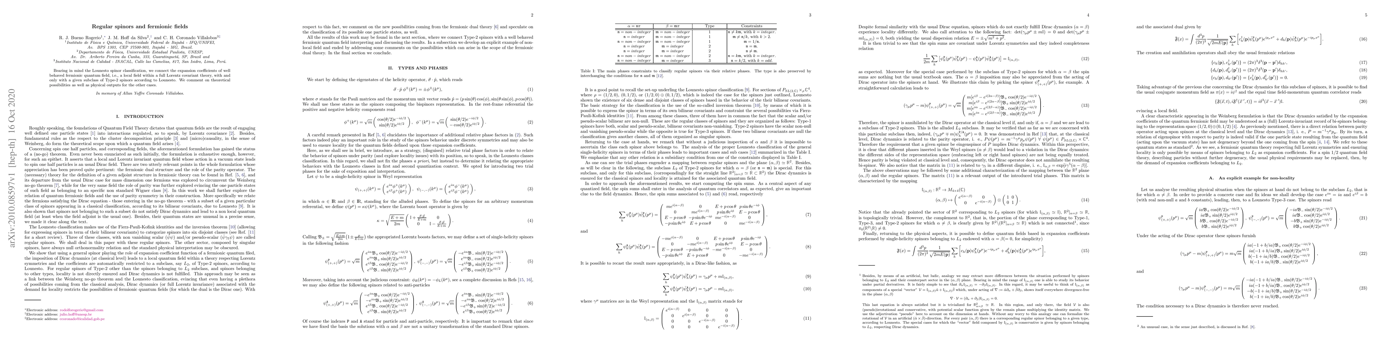 Bearing in mind the Lounesto spinor classification, we connect the expansion coefficients of well behaved fermionic quantum field, i.e., a local field within a full Lorentz covariant theory, with and only with a given subclass of Type-2 spinors according to Lounesto. We comment on theoretical possibilities as well as physical outputs for the other cases.