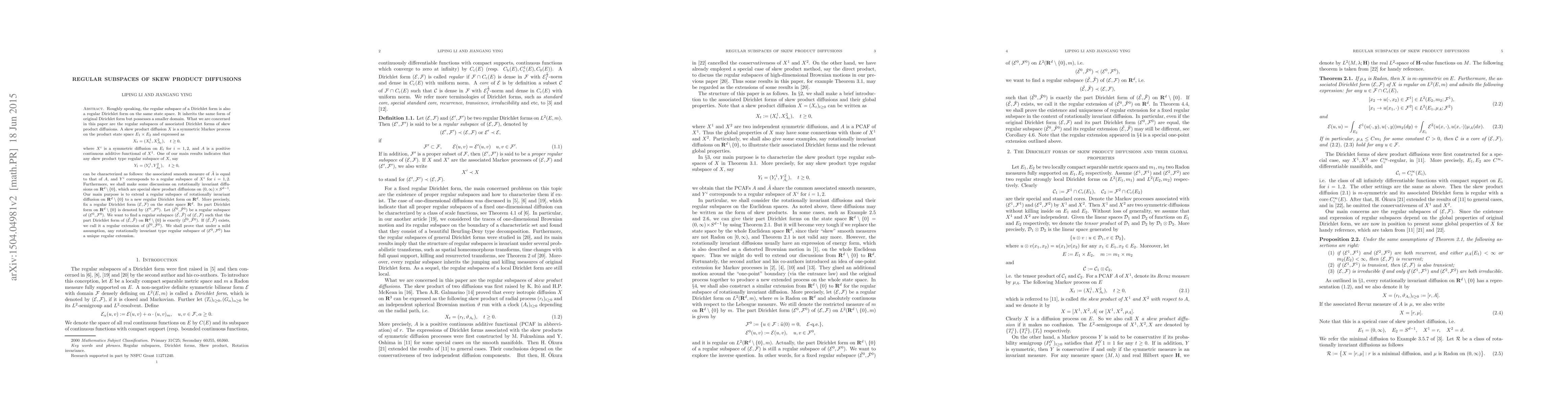 This paper investigates the regular subspaces of Dirichlet forms associated with skew product diffusions, showing that such subspaces can be characterized by the equality of smooth measures and the regular subspaces of individual components. It also extends the regular subspace of rotationally invariant diffusions on $\mathbf{R}^d\setminus \{0\}$ to a new regular Dirichlet form on $\mathbf{R}^d$.