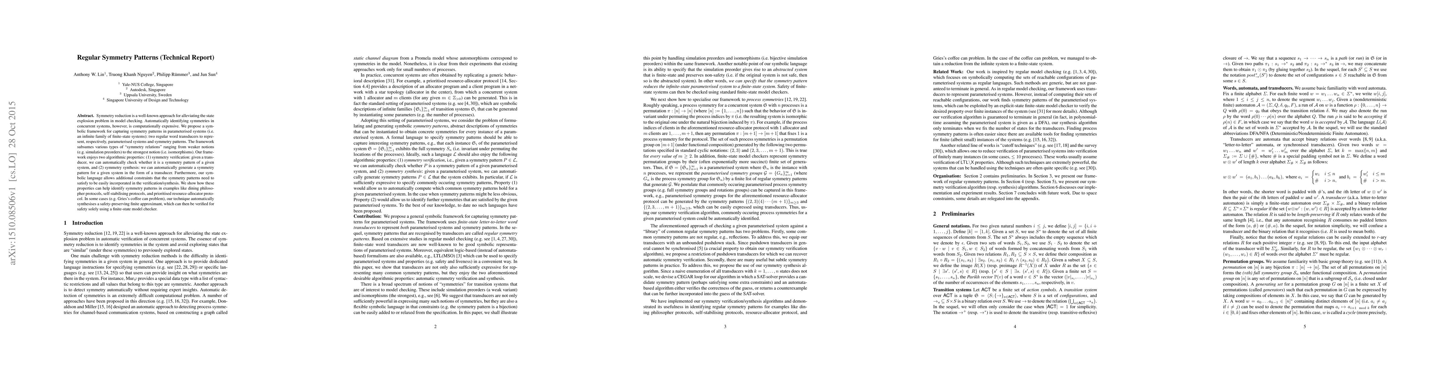 This paper proposes a symbolic framework using regular word transducers to identify and utilize symmetry patterns in parameterized systems to alleviate the state explosion problem in model checking. It introduces automatic symmetry verification and synthesis techniques, demonstrating their application in various protocols and the generation of safety-preserving finite approximants.