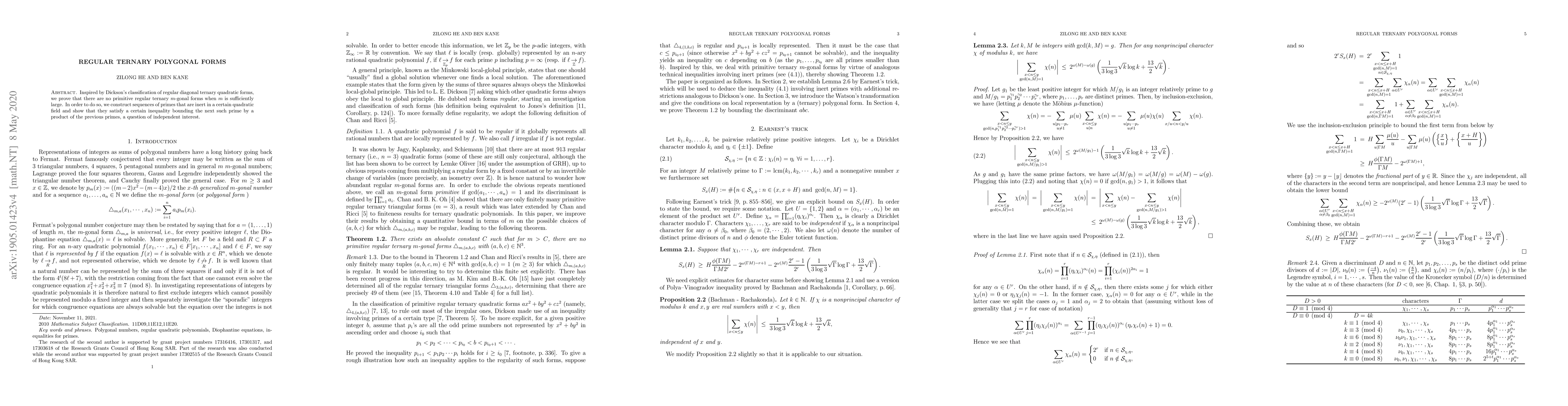 This paper proves that no primitive regular $m$-gonal forms exist for sufficiently large $m$, inspired by Dickson's classification. It constructs sequences of inert primes in a quadratic field to demonstrate an inequality bounding the next prime by the product of previous primes, which is of independent interest.