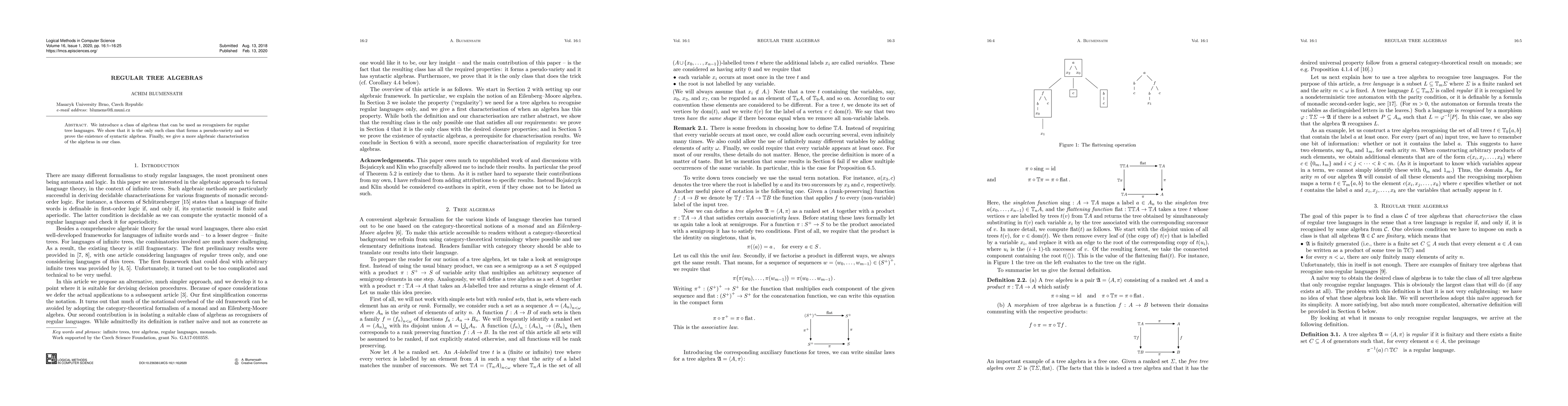 This paper introduces a unique class of algebras serving as recognisers for regular tree languages, establishing it as a pseudo-variety and proving the existence of syntactic algebras, along with a more algebraic characterization of these algebras.