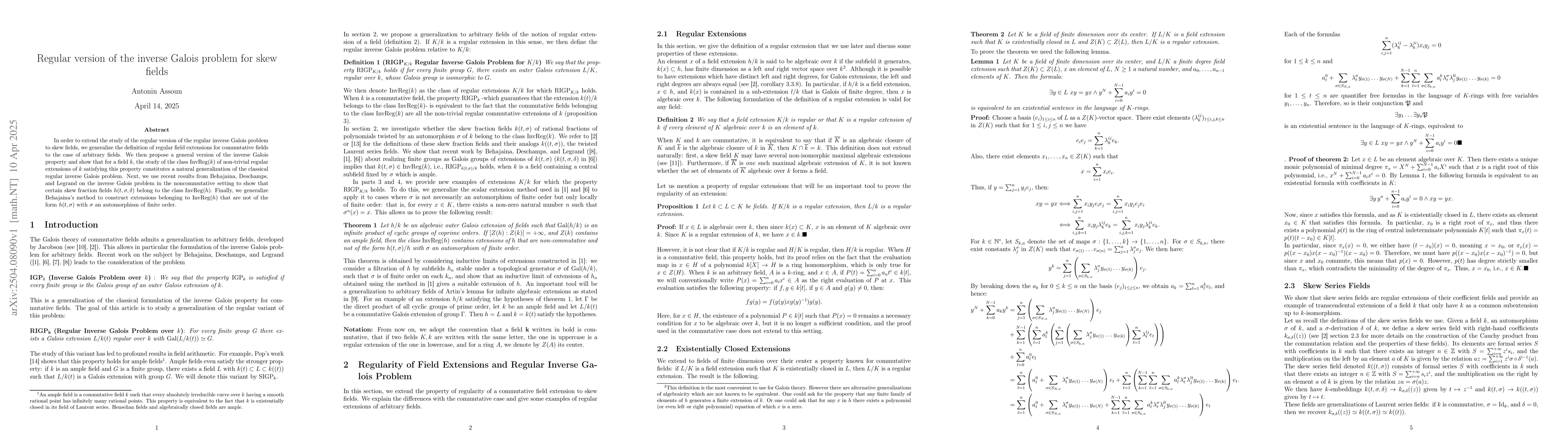 The paper introduces a generalized version of regular field extensions to skew fields and establishes a general inverse Galois property, along with proving that certain skew fraction fields satisfy this property.