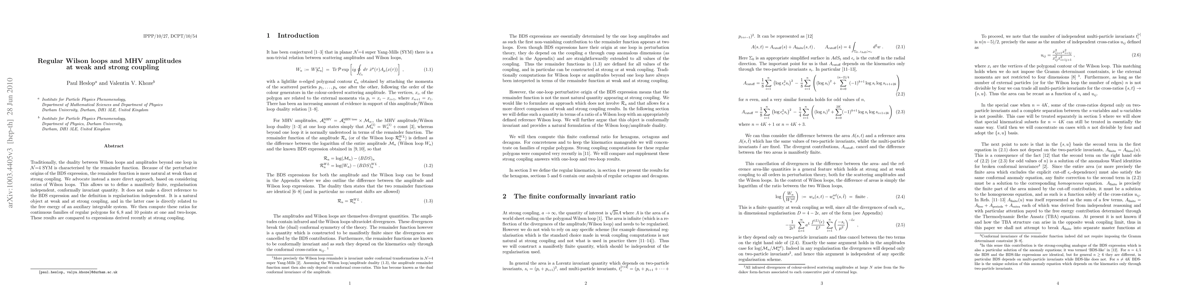 This paper proposes a new approach to relate regular Wilson loops to MHV amplitudes in N=4 SYM theory, defining a regularisation-independent, conformally invariant quantity that is applicable at both weak and strong coupling. The authors compute ratios of Wilson loops for polygons with 6, 8, and 10 points at one and two loops, finding agreement with recent strong coupling results.